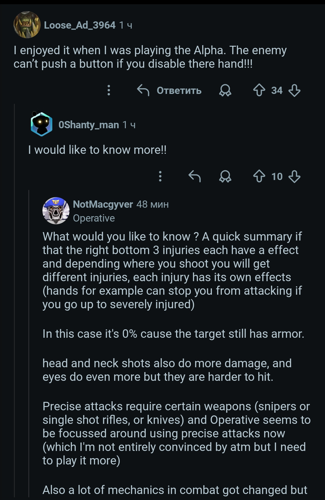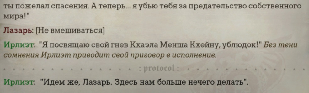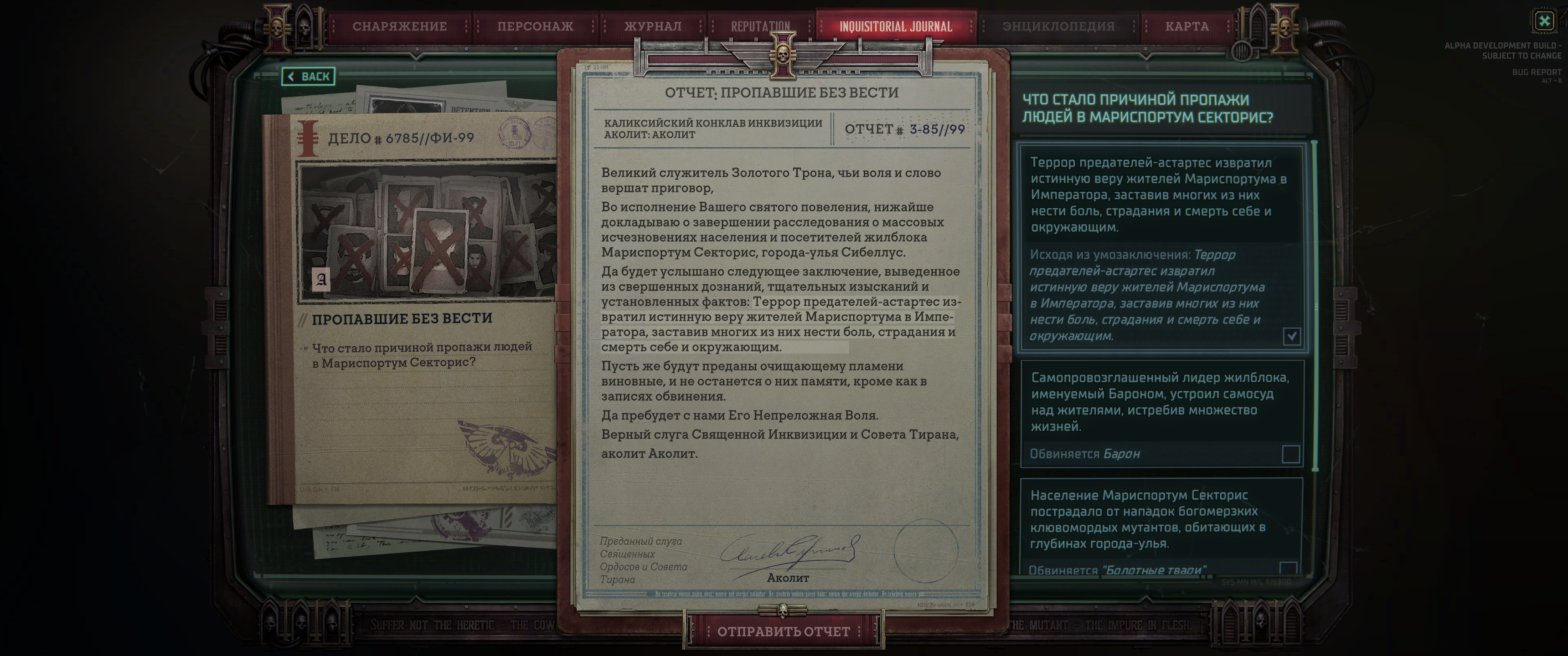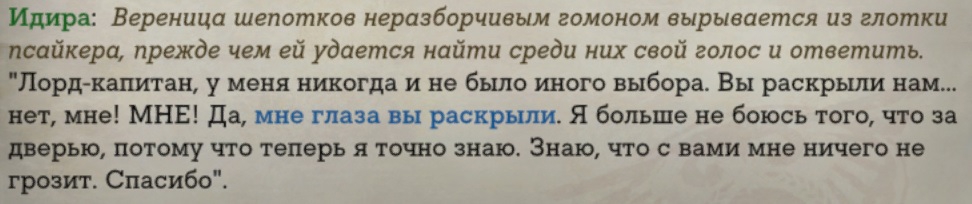 Часть вангований по русскому варианту сливов с форча: Хеймар точит нож на майоров и предаст, потому что винит в своем птсд их? То есть нас. Инчае ебаната интересным не написать. >"Они не выжили, Дэвос. Смирись. Можешь скорбеть по своим товарищам после завершения миссии >"Знаешь что, инквизитор... Пошел-ка ты в бездну >"Агент Дэвос, я рекомендую внимательнее выбирать слова. Либо ты выполняешь приказ, либо я пристрелю тебя прямо здесь, как бешеную собаку У Тоумы гейские вайбы уровня подручного Кальказара. Убил "команду" ради своего начальника. Вряд ли этот начальник - гг, очень уж долгое время, 20 лет. >Своими действиями команда ставила под угрозу не только успех миссии, но и вашу жизнь. Я устранил их. Согласно уставу >Тоума, я принял тебя к себе не потому, что ты знаешь устав. А потому, что ты знаешь, когда его можно нарушить! >Вы приняли меня потому, что видели, на что я способен. И пользовались этим последние двадцать лет. Так что изменилось? Гипатия - еретек. Отказалась выполнять требования адмехов. >Когнитивная герметичность техносоратников высока. Индекс благосклонности к тебе падает, сестра. Отступись >Лишь истинная Плоть сильна\". Скажи это. Организмы, что не приспособляются — погибают. Склонись >Отказано. Омниссия дал мне знак, и я останусь резистентна к слабости. Я найду доказательство либо стану им! У Гипатии есть резервные нервные узлы >Активирую апикальную физиосистему... Протокол резервных нервных узлов... Каждый ресурс Плоти будет использован, чтобы найти выход!