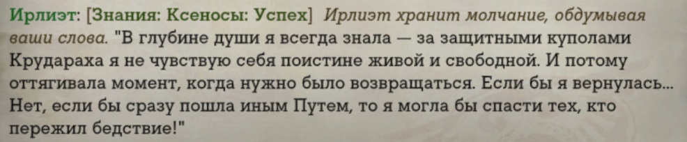 >Как будто только этого и ждала, Арушалай отвечает вам улыбкой на улыбку. "Вместе нам не страшны никакие трудности. Мы справимся! Обязательно справимся!"