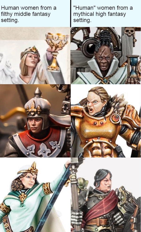>>50644618 >это Не это, фб и олд ворлд разные сетинги. Бабавоен как сороритка или эта нех из аоса это одно дело, это лорно. Ов это про тех самых бабовоенов на ролях мущин, стирание половых различий, воке.