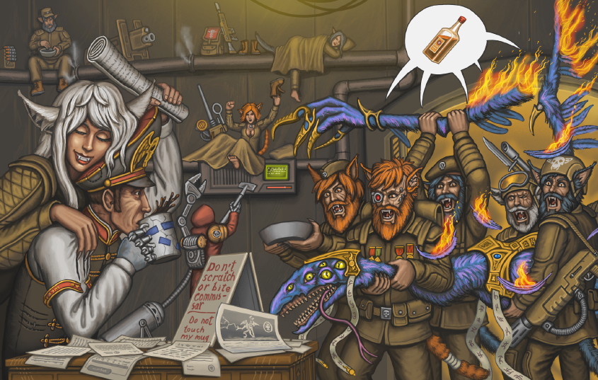 КАЖДОМУ ВАХАЕБУ, ВАХАФАНУ, ЗАЛЕТУХЕ И ЗНАТОКУ ЛОРА ЧИТАТЬ ВНИМАТЕЛЬНО: Совокоты известны крайней разношерстностью своих сюжетов — в одной игре может сочетаться как аниме/трансухи/соя так и самые базированные персонажи. А также известны своим вольным отношением к сеттингу: с Вахой это может вызвать горение жоп. Воспринимайте Rogue Trader как неканоничное произведение или фанфик. Хотите 100% следования "канону" — идите почитайте рулбук.