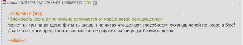 >>50655672 >Сложность кор в рт не сильно отличается от кора в вотре по ощущениям Может ты там на рандоме фиты тыкаешь и не читая что делают способности хуяришь лапой по клаве в бою? Иначе я не могу представить как можно не ощутить разницу, рт безумно легок.