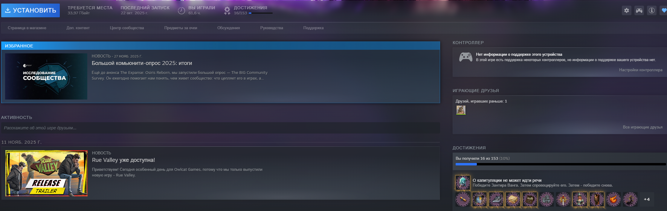 Новости: 1)Начался долгожданный Альфа-тест Dark Heresy - активно знакомимся с новым шедевром. 2)Релизнулся большой патч 1.5 для РТ - ребаланс, переработка колоний и еще много-много всего! Первое длц с компаньоном-ассасинкой культа смерти и расширением корабля — вышло средним. Второе длц, с компаньоном-негром-арбитесом-пидорасом и его летающим киберпетушатником — вышло и оказалось гораздо лучше первого. Третье длц про Тразина Неисчислимого и его бляцкий музей запланировано на апрель–июнь 2026 года. Четвёртое длц про космическую помойку запланировано на июль–сентябрь 2026 года. Список изменений Патч1.5 https://steamcommunity.com/games/2186680/announcements/detail/533239065676349754?snr=2___ Релизный трейлер Void Shadows: https://www.youtube.com/watch?v=hsgKGORxxXc[РАСКРЫТЬ] Релизный трейлер Lex Imperialis: https://www.youtube.com/watch?v=Dh9lu23PCiA[РАСКРЫТЬ] 3) Owlcat представила The Expanse: Osiris Reborn, будущая Аction RPG по вселенной Экспансии. Анонсирующий трейлер: https://www.youtube.com/watch?v=pIQifuOTTe8[РАСКРЫТЬ] 4) В разработке следующая игра совокотов по вселенной Warhammer 40000 - Dark Heresy. Анонсирующий трейлер: https://www.youtube.com/watch?v=mmfu_Spm-6U[РАСКРЫТЬ] Альфа-тест: https://darkheresy.owlcat.games/news/ru/8 5) Патч 2.5 для ВОТР с реворком мифика Золотого дракона вышел, заодно появилась GOTY версия со всеми контентными дополнениями. Это последнее добавление контента в игру. Кто ждал финального релиза - это он.