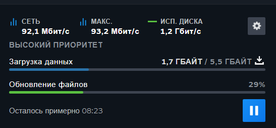 Бля ебаный стим, я забыл что там игра обновляется и закрыл его, теперь открыл и он по-новой 100 гигов качает, ебануться. Это говно даже не спросило хочу ли я его закрыть во время апдейта