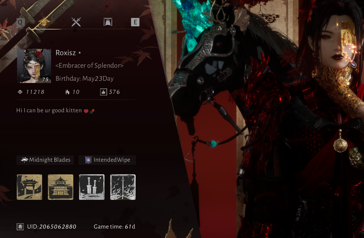 Логинишься в игру, едва переступив порог, ты видишь за спиной паланкин, на котором прибыл. У ворот, выстроившись в два ряда вдоль пути духа, тебя встречают биньи. Синхронно совершающие глубокий ваньфу хором голосов: "С возвращением, Лаое". Ты проходишь в свой шуфэй, где пахнет сандалом и тушью. Там, в боковом покое за ширмой, тебя уже ждёт тунфан ятоу, чьё тело благоухает после омовения в отваре трав. Она покорно склонила голову, готовая исполнить свой долг ночного дежурства у твоей постели