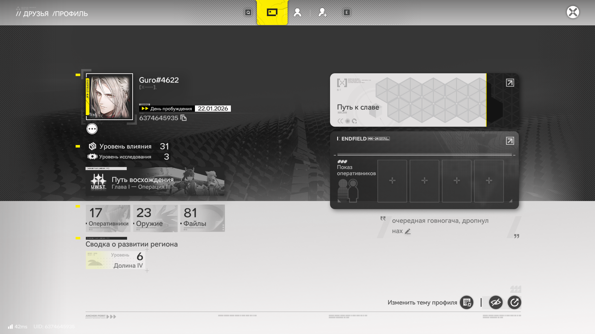 >>50658278 Настроение «осторожный оптимизм». Игра удерживает стабильную базу игроков благодаря регулярным обновлениям (вроде недавнего расширения «Императорский дворец»). Китайские игроки советуют глобал-версии готовиться к тому, что по-настоящему глубокий контент начнется в новых регионах, которые сильно отличаются от стартовых Кайфэна и Цинхэ. Итог: Если тебе нравится на глобале сейчас, то дальше будет только масштабнее. Китайцы подтверждают, что игра не превращается в «тыкву» через полгода, а продолжает развиваться как качественное одиночное приключение с опциональным онлайном.