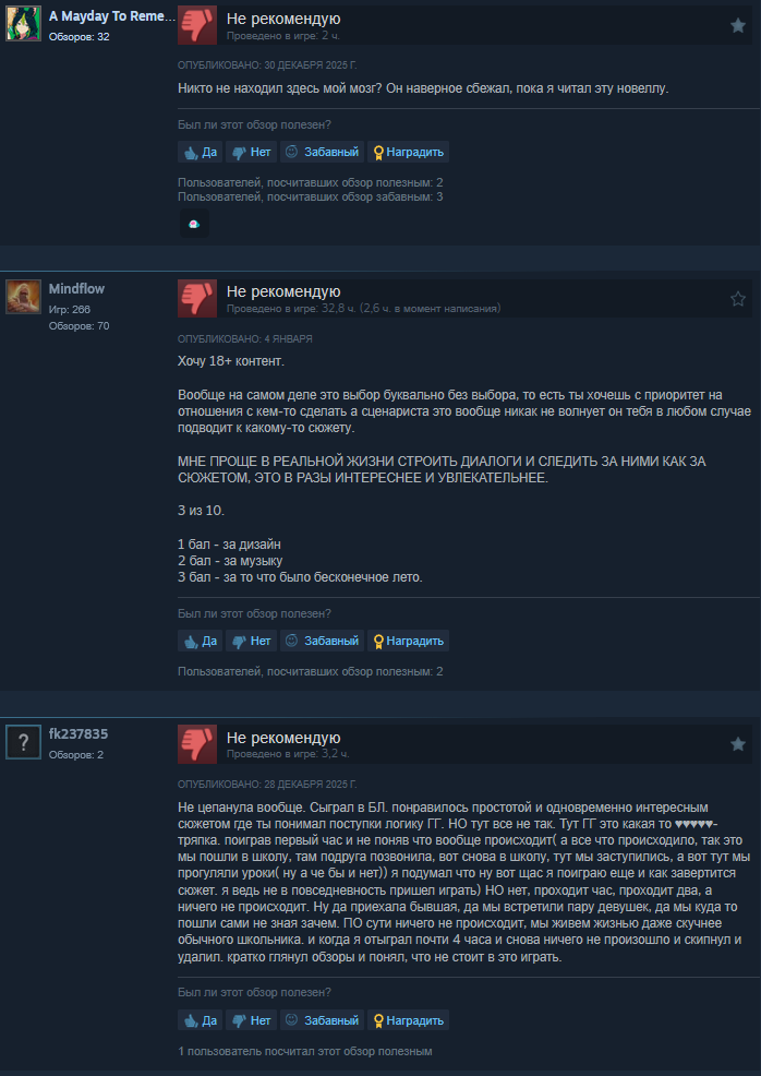 Интересно, я один из всего треда, кто ждёт игру от Альбатросса? Если вы знаете кто это, то вы знаете, а если нет, то помянем. Вот помню как вышла демка для телефона, арт был не такой детализированный и полированный, но пропорции правдебодней и персонаж по центру стоял, будто перед тобой, а не как в новелке. Жаль что от этого было решено отказаться и в итоге игру переделали с нуля в том виде, в каком она сейчас. Старую демку можно было бы хоть чутка доделать, Legacy в конце названия добавить, чтобы просто хоть как-то завершить и уже спокойно с чистой совестью новую пилить.