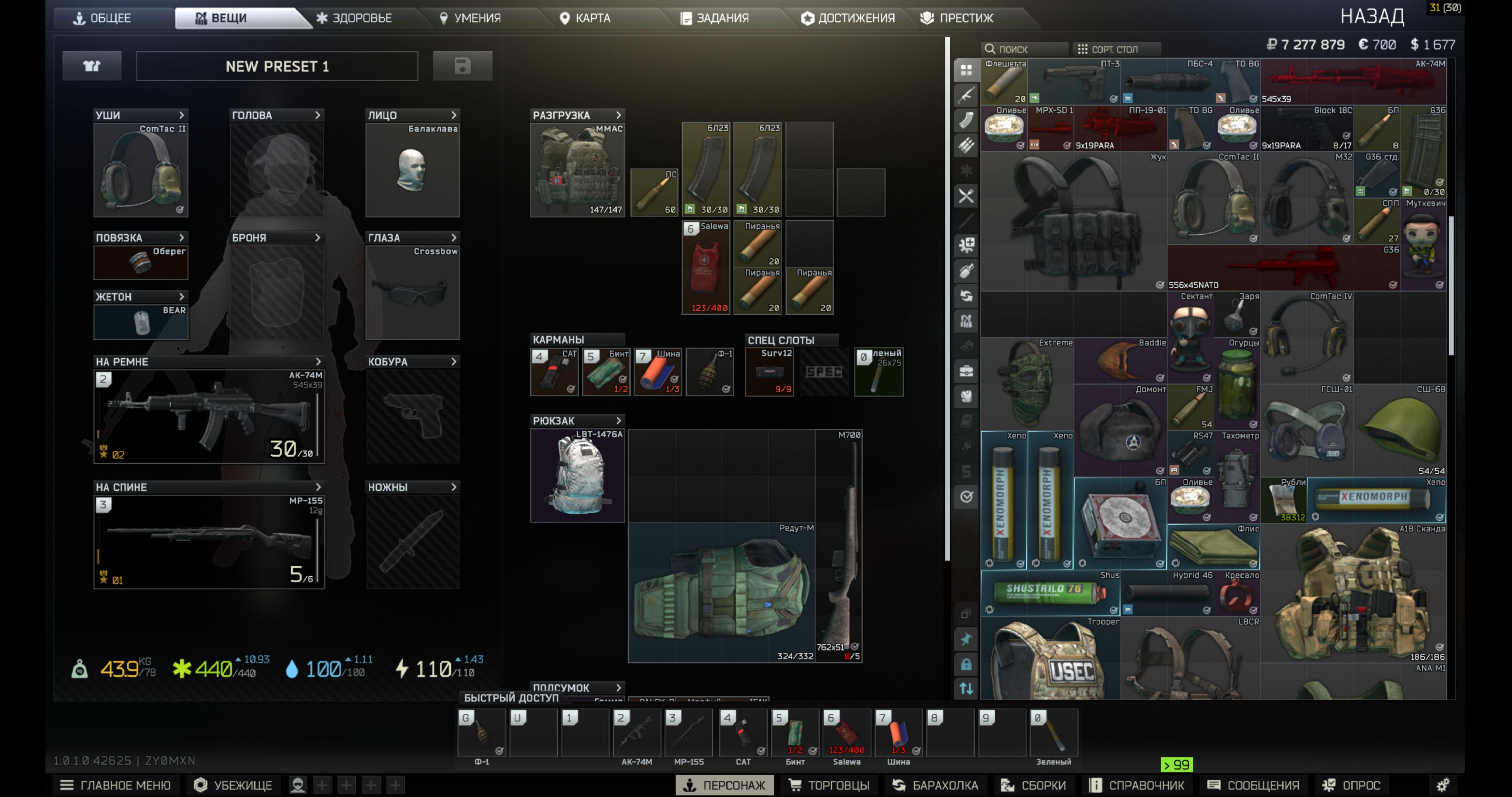 >бери ПП и играй серьезно Игра началась, ставки крупные, лям внутриигровой валюты EFT и потенциально 2 часа проёбаного времени. ПП ок, но после того, как ETG перекинули штурму, смысла особого на разведчике играть в чекпоинт не вижу. Я активно играю, бегаю, прыгаю, хилы от шприцов хорошо помогают, кровотёков нет, пострелялся, обновился у ящика и кайфуешь.