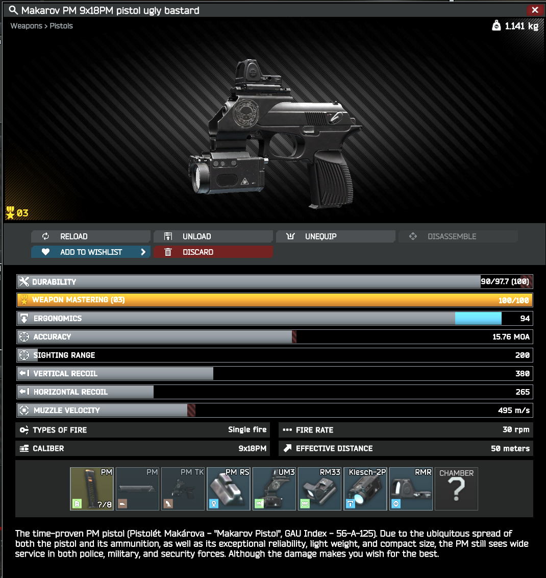 >>50647179 Я минуты три вглядывался в твои скрины и в эталонный на вики. Из разницы - у тебя прицел MBUS не снят и фонарик на другом креплении висит. Попробуй разобрать пушку на части и собрать прямо как на картинке в вики, прямо 1в1. Еще может быть какая-нибудь хуйня если аккаунт в ПВЕ не сбрасывал и пушка/обвесы были получены в прошлом вайпе. ID предмета поменялся на релизе и все, пиздец. Попробуй все заново купить на барахолке.