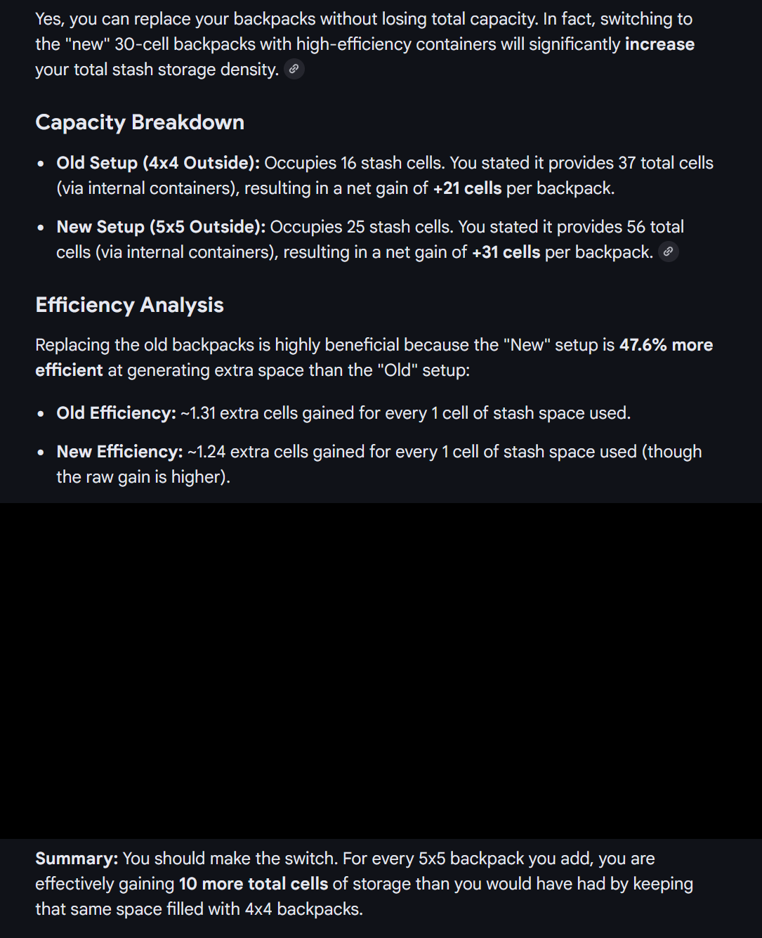 >>50657274 дак я и не делаю ничего, я по старинке с мосинкой или топористом выхожу и все, если нужен лут, то диким пылесосим все подряд и имеем всегда полный схрон барахла, что аж второй ящик покупаем, а все эти собирательства в рейд нихуя не приносят, это все для чушпанов и лоховых задротов с +1000 часов игры