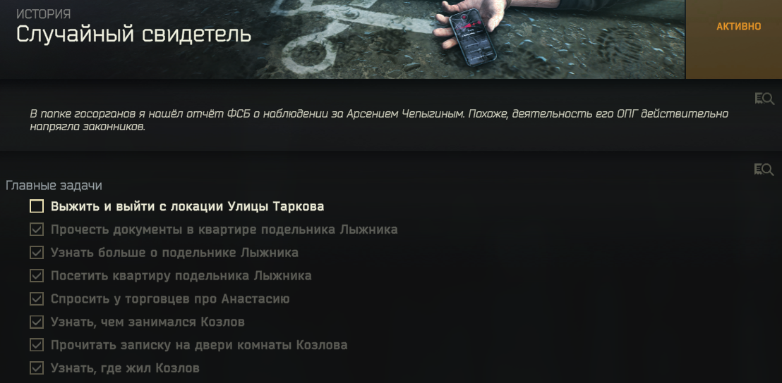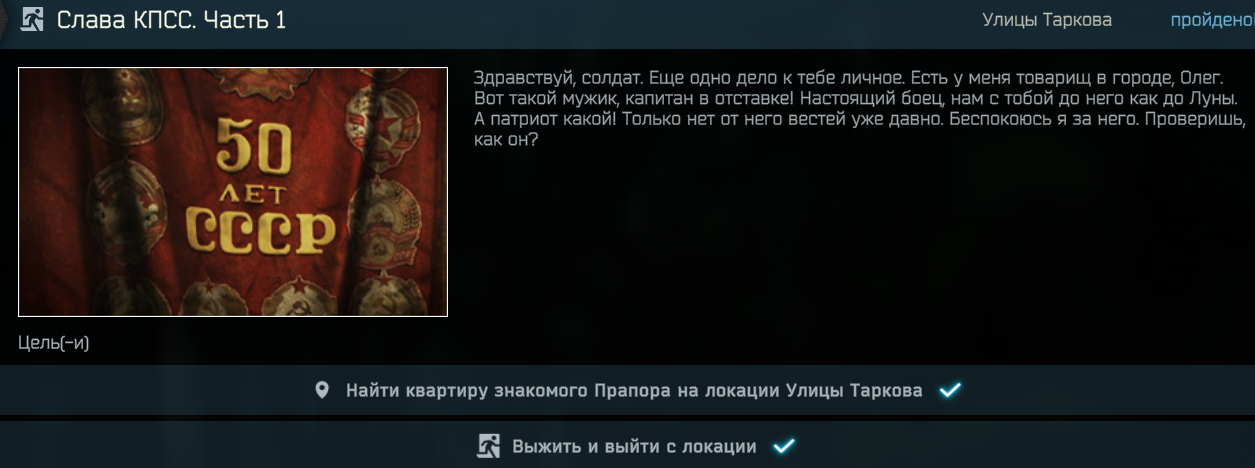 >>50658251 >>50658256 И так, оказалось, что надо зайти и выйти с улиц таркова. Потому что по задумке БСГ гениев, ты должен был наверное прочитать все эти документы на локаации, чтобы это сразу сработало, а не потом как выйдешь спокойно в схроне. И вещей для тех кто будет искать - 4 шт 2 вырезки из гозет 1 папка фсб и 1 розыск говнюшка, так что всё правильно, но как обычно работает через жопу.
