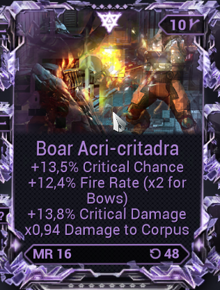 >>50657527 Лучше не трать роллы на мр милишек, там слишком много хороших модов. Поэтому мры редко суют, разве что гига ебнутые. А вот на обычные пушки или оружия петов - постоянно. Т.к. там нету комбинации из модов на комбо поинты которые 3-4 слота занимают.