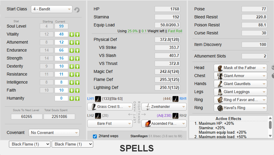 ОП и те кто катить собираются далее, добавьте более крутой калькулятор для персонажа. В нём намного больше инфы в билдостроении. https://er-inventory.nyasu.business/