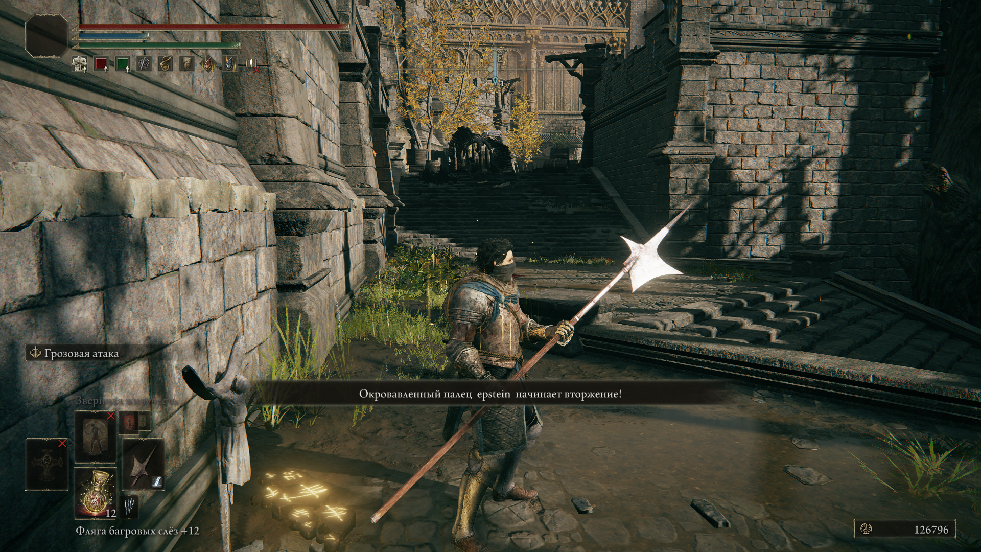 >>50681305 Так я говорю за статусный эффект, который можно накопить как через молитвы так и дефолтным оружием с кровотеком и прахами войны. А так на НГ+ его без труда можно заспамить спецатакой его же копья при билде через аркану