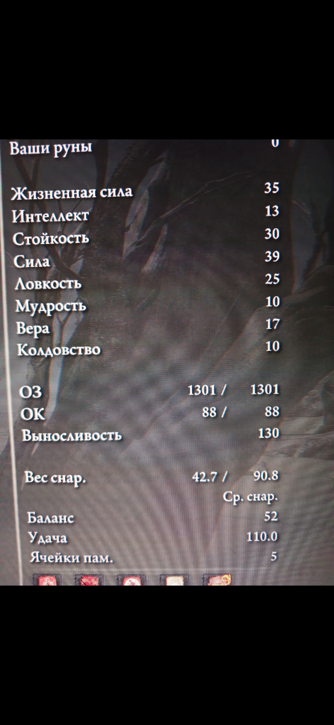 И это я говорю про милипиздрическую дубину. Большие бонькеры ещё меньше получают профита. И опять-таки, профитапо сравнению софткапа с минимально возможным значением в игре. Про более старые соулсы я вообще молчу, там стамина кост у оружия ещё выше.