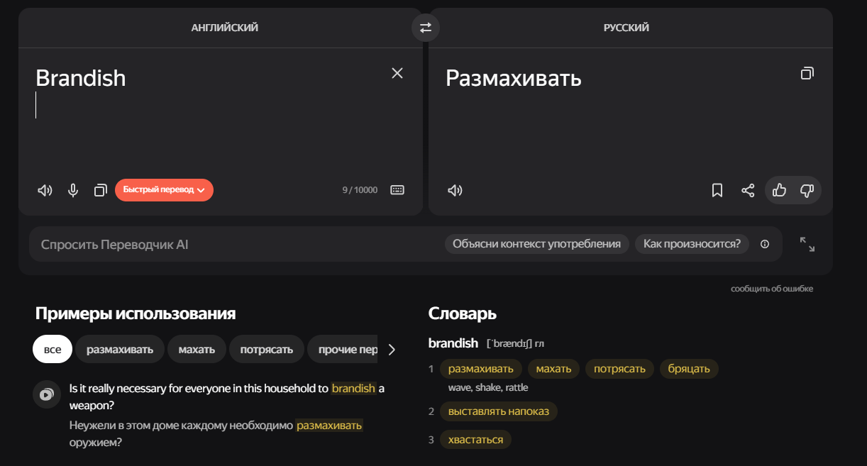 >>50677006 У Фии "brandish" на русский перевели как "забери". Да и как бы очевидно, что речь там вовсе не про махание, а про делание своим. Думается, не будь игра полна староанглийских словечек вроде "thou art", то вместо брандиша там было бы "claim".