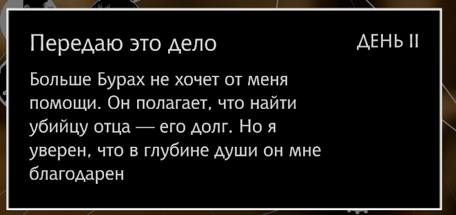 Сильно улучшили «чертоги разума» в квестах второго дня, связанных с расследованием судьбы Исидора. Рассуждения Данковского стали намного более ветвистыми и детективными