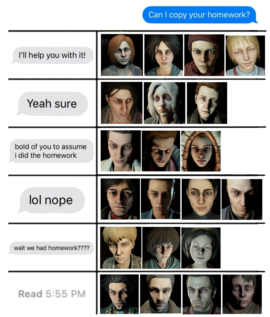 >>50683474 Лицо вот это тоже как и шабна отгоняется огнём - надо в хате свет зажигать ходить. > а шабнак вшит в лор Ну она и вшита как некая легенда - меня в целом устраивает её присутствие, так как остальные персонажи когда ГГ говорит что за ним кто-то бегает, кличат бакалавра шизом, и только Самозванка знает что знает Бакалавр - видимо наслушался всяких охуительных историй от твириновых алкашей и вот результат.