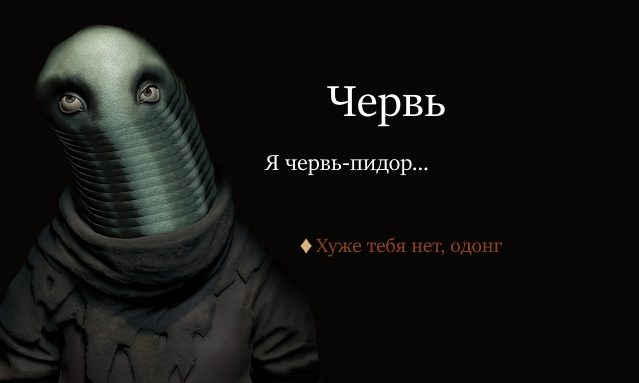 >>50661160 >Даже с учетом того, что по ощущениям в мордве читать нужно было ощутимо больше Ну пиздёж ведь. В первые дни могло так показаться, потому что каждый уникальный тип мимопроходила имел по небольшому диалогу, а в триквеле там по чайной ложке добавляют диалоги с рядовыми горожанами. Но как только начинается беседа с "приближёнными" (всё никак не отвыкну от этого термина, хотя их уже в сиквеле не было) - держи абзац за абзацем, абзац за абзацем. И всё про метафизику да про метафизику, и неважно, с кем говоришь - с детьми, с фабричными, с хуичными. Из пустого в порожнее: - Вы сбежали, вы обрекли город. - Нет, я объясню. - Ты пиздишь. - Нет я не пизжу. - Но ты сбежал и обрёк город, признайте. - Не признай. Каждые ёбаные двадцать минут первые четыре часа. - Отпусти - Не пущу. - Ну кому я говорю... - Мой лучший дознаватель ЛД...
