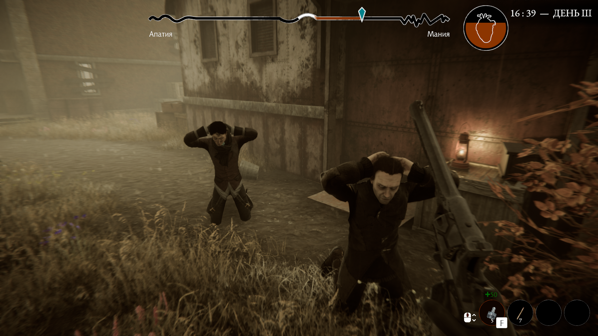 И вопрос "Зачем"? звучит в голове очень часто. Лучше и не скажешь: "Зачем вообще нужна механика, при которой от самоубийства я спасаюсь, пиная баки и шатая детские качели? Зачем вообще нужна механика, при которой моё сердце разрывается при попытке две минуты погреться у бочки, а затем сказать кому-то, что у нас всё будет хорошо?" Эта хуйня, когда действие Х даёт ресурс Y и это не кажется чем-то здоровым - в целом норма для всех этих нарративистских игр. Но там это так не било в глаза. Да, мне казалось странным, когда при поедании одного кабачка в Часослове мне давали 1 очко Зимы, а при поедании другого - 1 очко кузни, но здесь... >>50660771 Когда как. Финальные реплики с ромбиком по типу "грустный ответ" - "оптимистичный ответ" точно влияют. Но почему юла злит, а плюшевой бычок печалит, почему грустная пианинка злит, а патефон печалит - я совершенно не понимаю. Это как будто из какой-то мобильной игры. Это НЕСЕРЬЁЗНО. Это, что называется, геймистский элемент, на фоне которого бег по диагонали из первой части и кофейные бинты из второй (снижать усталость кофе, а потерю здоровья от кофя лечить перевязкой) - детский лепет. Тут буквально кор-механика вокруг подобных вещей, с которыми никакой ролеплей не работает. В П2 я наступал на горло ролеплею, зажимая шифт или слишком активно вступая в бартер с каждым встречным. Можно было стиснуть зубы и играть без этого, бегая лишь по мере необходимости, меняясь потихоньку. Тут - вот эти "на пианинке скорость с утреца набрал, на 20 сердца принял настоечку, тут попинал бачок, тут дрыньк-брыньк на динамо-машине, тут в арочку по ведьмачьему чутью"... блядь, как же это ИСКУССТВЕННО.