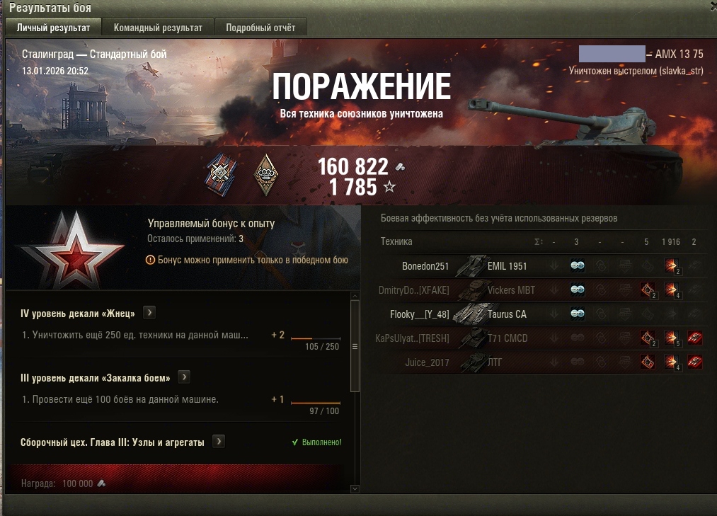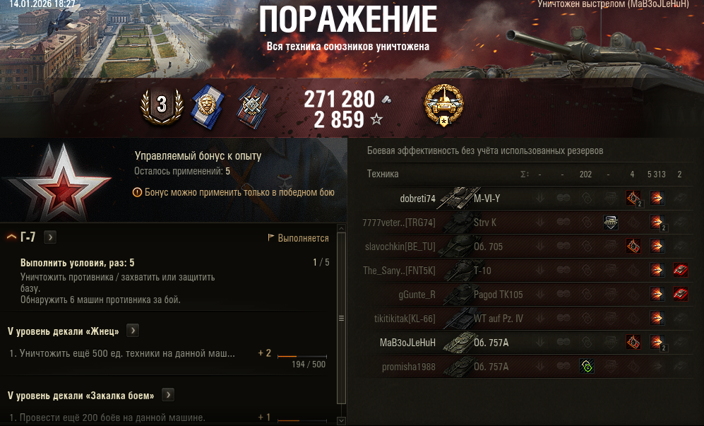 Зашел отыграть 1 бой в натиске, золото б, в моей команде 45% пчел на ебре, который 30 секунд просил меня убрать штуга (хотя я его и не хотел брать, просто ждал, что животные пикнут), в команде противника 45% т100. Мои 6к урона и 2 фрага оказали 0 влияния на бой. Чувствую, что завтра, когда буду делать задачки, кайфану знатно.