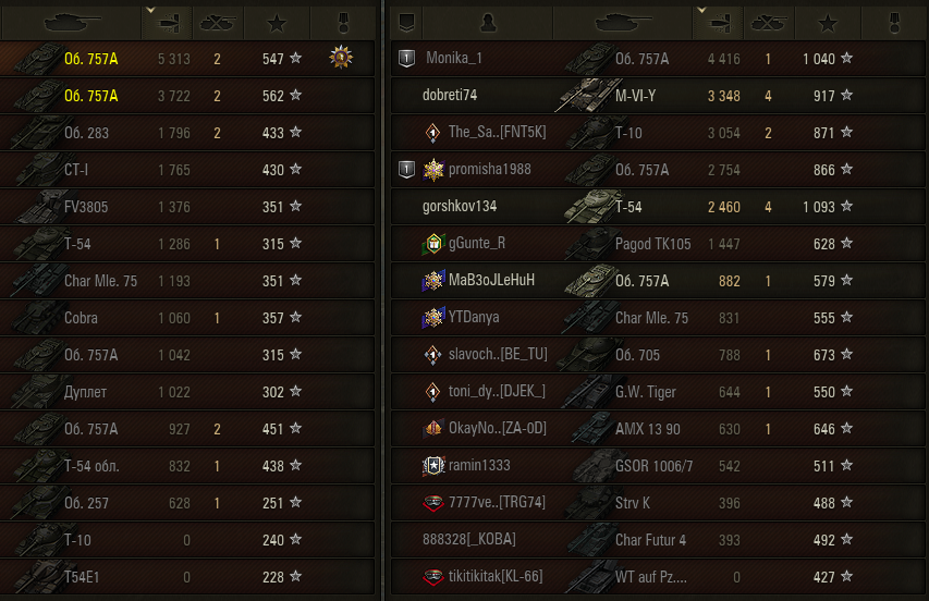 >>50662336 → У меня дуплет есть с коробасов и т-54б, и я прост заметил насколько дуплет фармит больше, хотя оба танка ст ссср 9 лвл. Вчера например при проебе и 300 дамага насыпало 60к серы на дуплете. Тут очень интересную мысль подкинули что лучший фарм танк тот прем у которого снаряды дешевле, где бы надыбать таблички с таким сравнением танков.