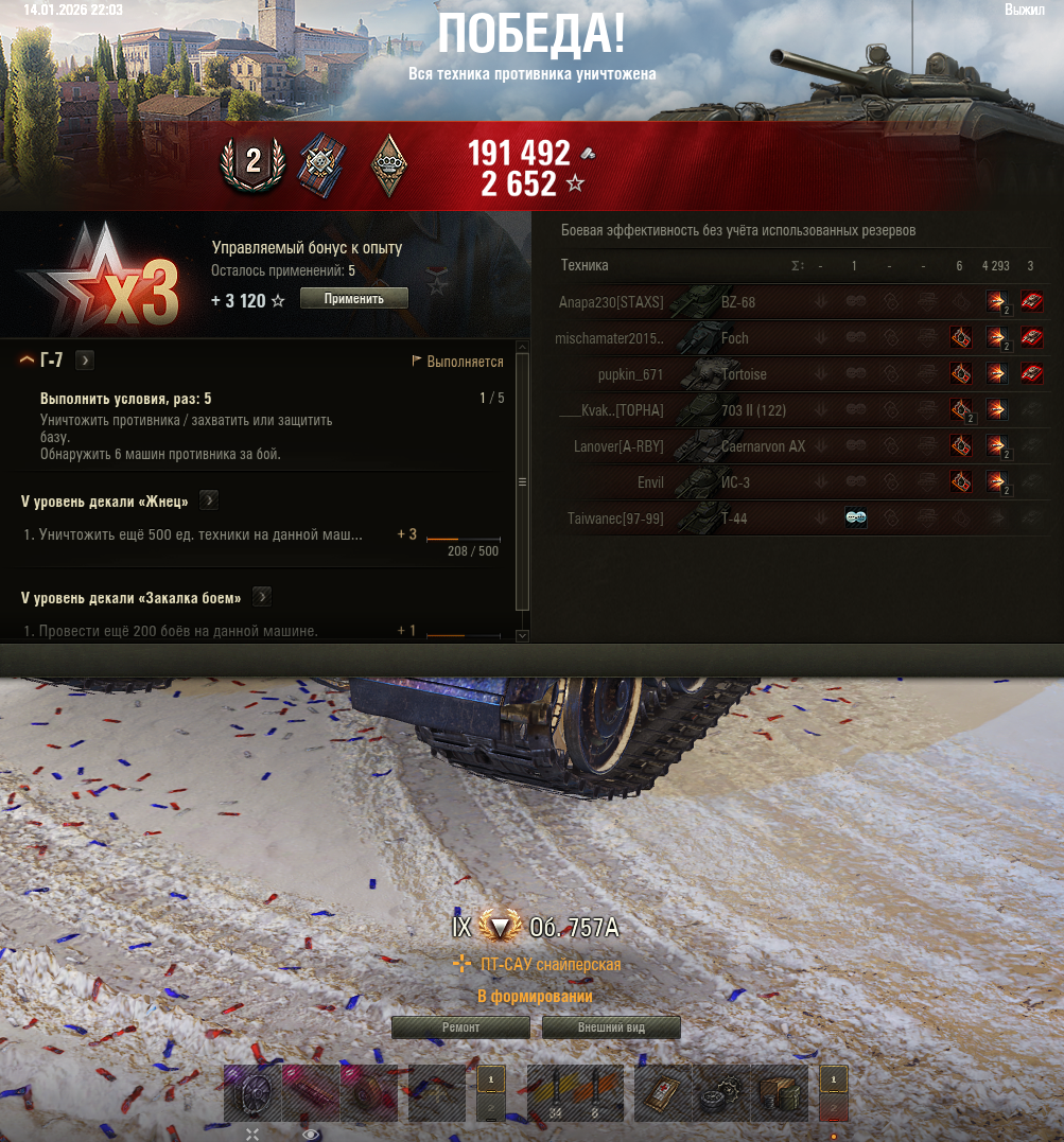 >>50662930 К-91 около имба если поставить боновые досылатель вентиляцию за счёт дмпа он реально у меня лучше всех идёт и универсален на всех картах и я для режима трофейную просветлёнку поставил иногда обзор получше решает в бою и даёт пересвечивать. Танк после апа мощный очень с точной пухой. Не спроста на нём заметил почти всегда победы вот чем нужно бустить повышение ранга.