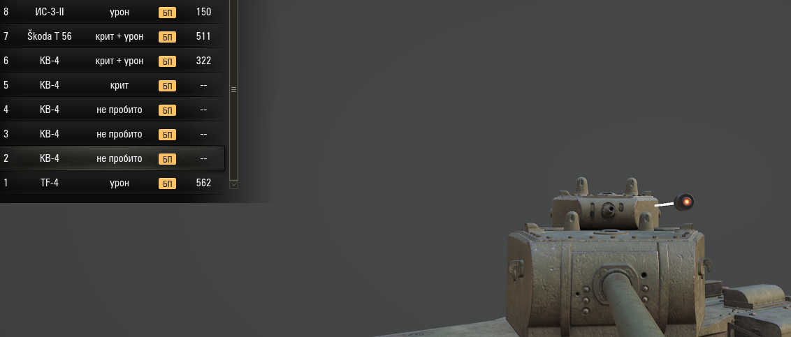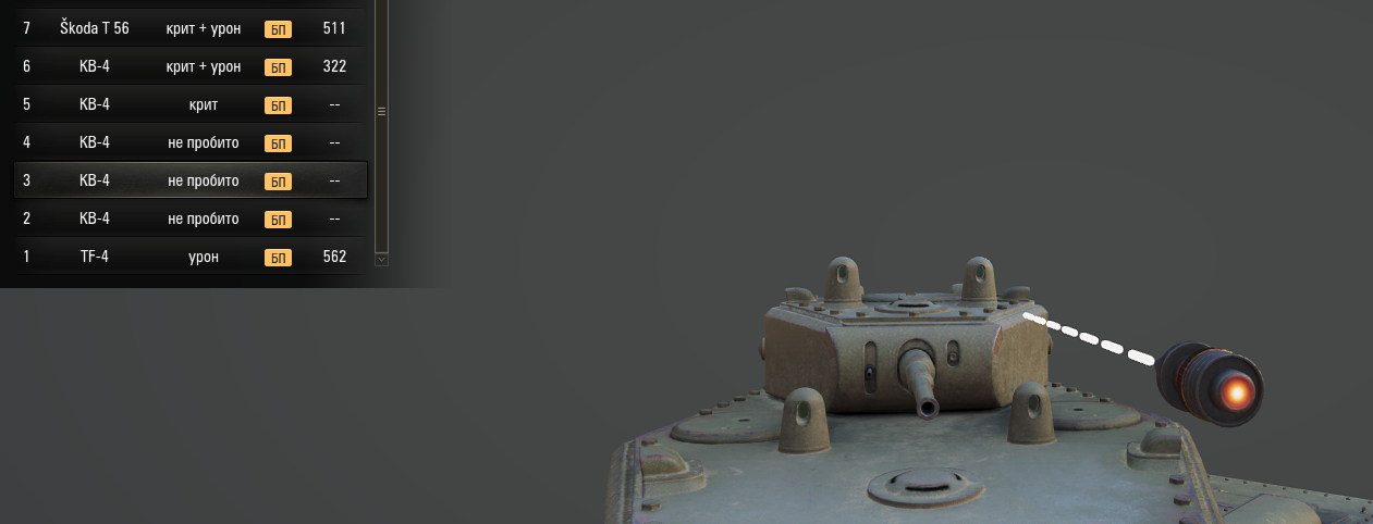 >>50670927 ВНИМАНИЕ ВОПРОС - КУДА ПОЛЕТИТ СНАРЯД? ВАРИАНТ 1) ПРЯМО В ТАНК И НАНЕСЁТ ЕМУ УРОН ВАРИАНТ 2) ПРЯМО В ТАНК, НО СДЕЛАЕТ ПРОБИТИЕ БЕЗ УРОНА ВАРИАНТ 3) РИКОШЕТ ВАРИАНТ 4) ПРОЛЕТИТ СКВОЗЬ ТАНК