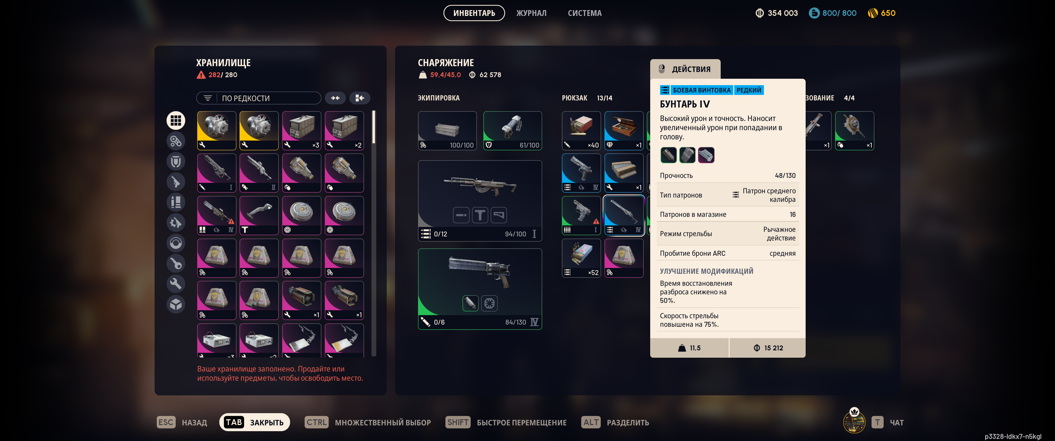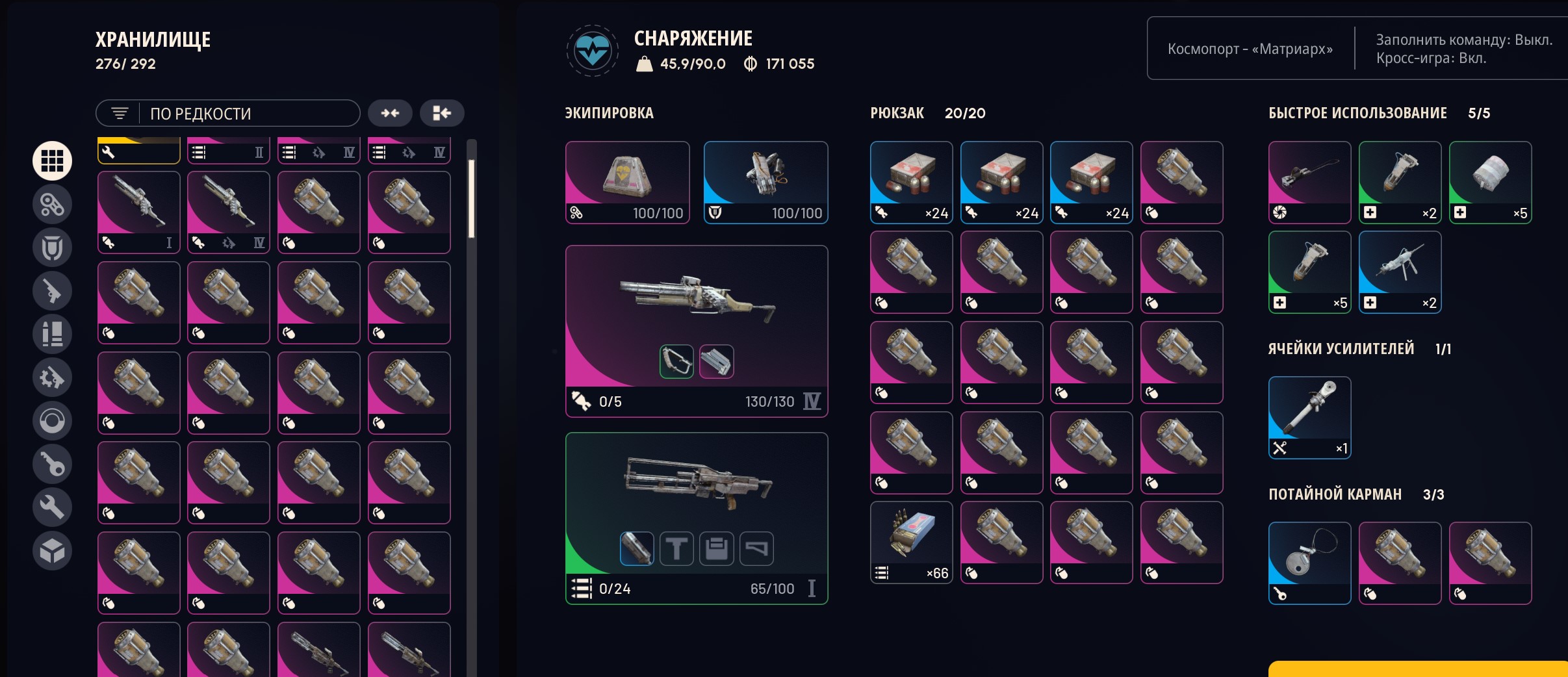 >>50726980 Продавай что не нужно в больших количествах и легко достать. Базовые материалы не копи. Железо конвертируй в мех компоненты, мех компоненты конвертируй в продвинутые мех компоненты. Оружейные части конвертируй в синие оружейные части. Электронные компоненты конвертируй в продвинутые электронные компоненты. Компоненты модов не складируй, сразу крафть модули и вешай на свободные оружки. Апгрейдь оружие. Не складируй то с чем не будешь играть. Бурлетты, арпеджии, серое говно - в разбор. Модули вешай на оружие. Нет оружия - скрафть серое говно, повесь на него. Не складируй модули которые тебе не нужны. Тебе не нужно много стаков фиолетовых материалов. Я больше трех стаков не коплю, сразу на продажу. Синие части арков, всякие динамики, сенсоры, красные канистры обычно не нужны, но как нужны, так их всегда нет. Пытайся заранее предсказать когда что тебе будет нужно, а не складировать это все. Не складируй то, что можно легко скрафтить. Щиты, рюкзаки занимают много места. Кучи гранат и бинтов занимают место.