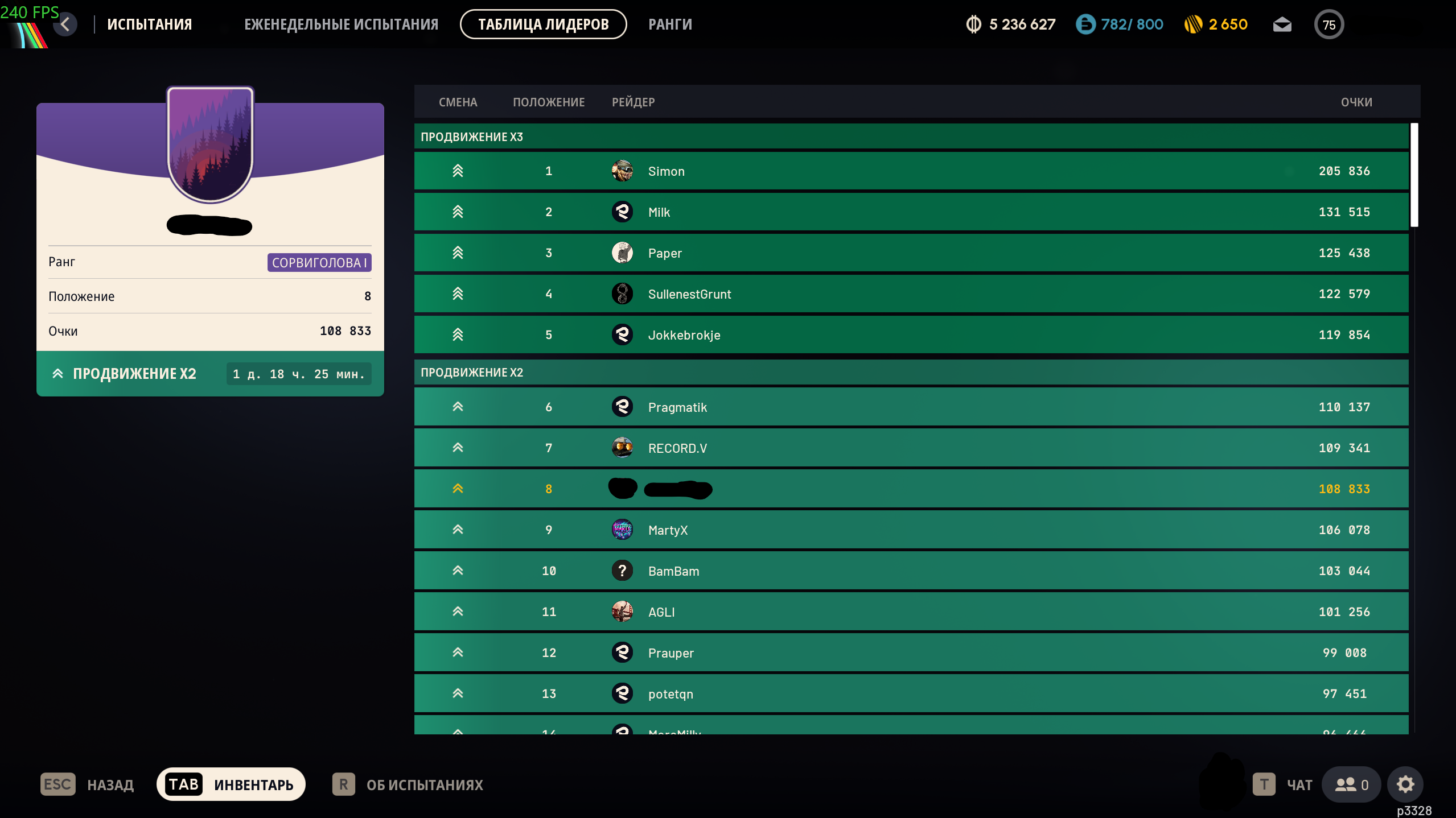 >>50681119 >>50681246 Порвал жопу чтобы немного улучшить в соло, отбиваясь от фентаниловых стрелков, норовящих нанести удар в псину. Сил мытарствовать больше не осталось. И то, в скобке такое плотное распределение по результатам, что еще можно и слететь обратно.