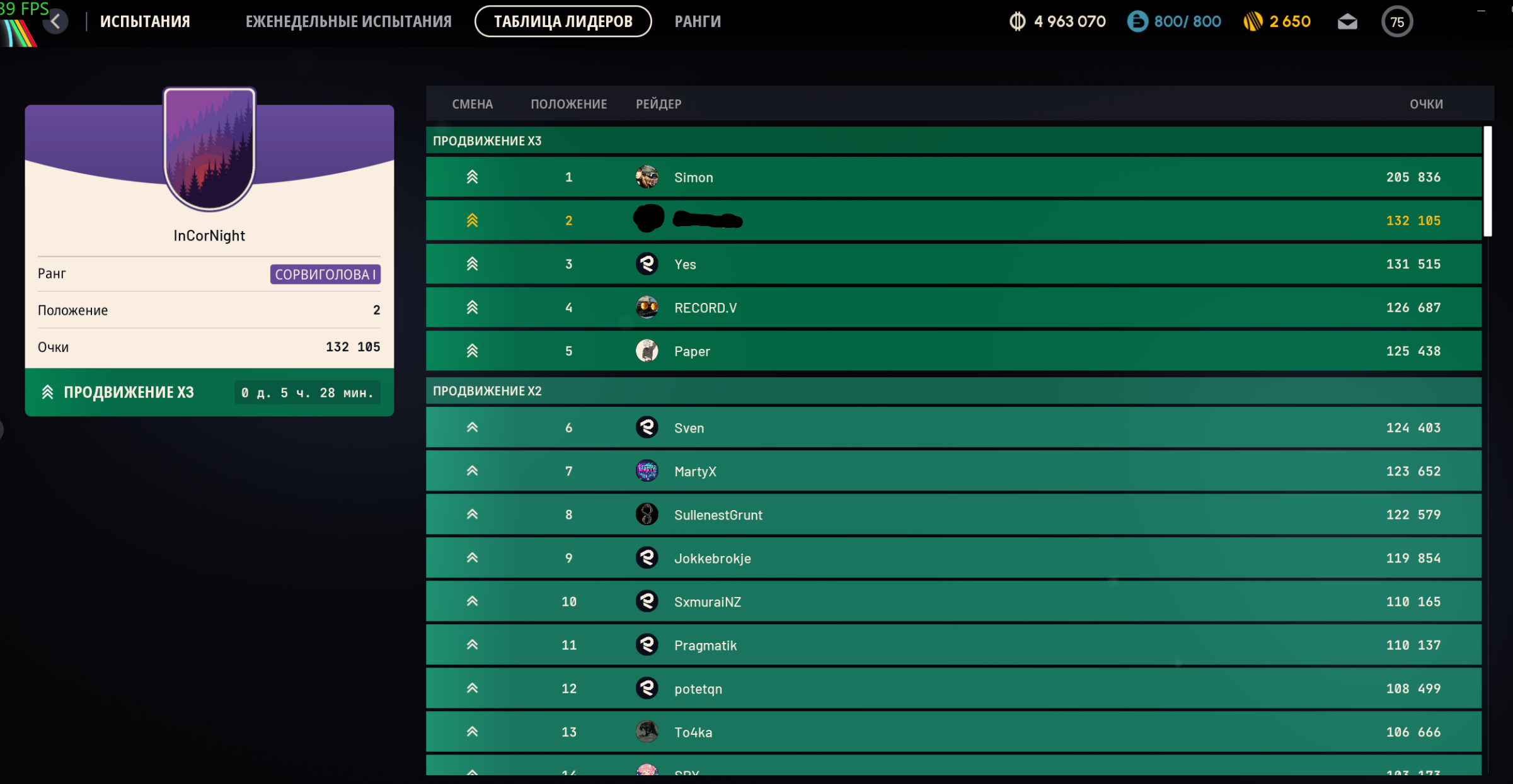 >>50720902 Та же хуйня, только я на 69 месте был. Ахуел каким чудом меня не скинули, учитывая, что я на прошлой неделе 1 раз зашел и лениво пофармил ос с травой, остальное почти не трогал