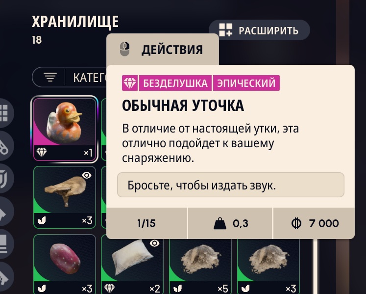 >>50723670 Просто множу КАПИТАЛ, но если хочется слоты убежки занять утками, ради милоты, то тоже хорошее решение... Им бы все таки сделать безделушки отображающиеся на полках отдельными слотами. Чтобы в фильтре закрепить их в инвентаре и на полках, как игроку нравится раз есть аутяги тянущиеся к эстетике виртуальной сычевальни.
