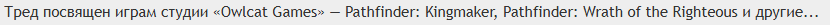 >>50670500 (OP) >Тред посвящен играм студии «Owlcat Games» — Pathfinder: Kingmaker, Pathfinder: Wrath of the Righteous и другие... >и другие... Пфг-брату новую методичку спустили?