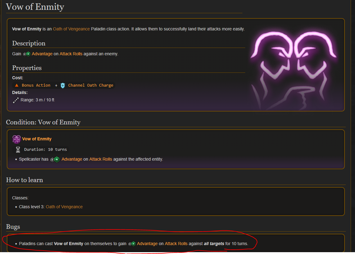 Всякие обеты паладина, которые должны кидаться на одну цель для адвантеджа, можно кинуть НА СЕБЯ НАХУЙ и получить адвантедж на 10 ходов с нихуя против ВСЕХ врагов.