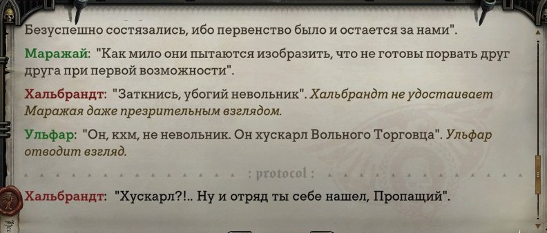 >>50673265 Все квесты напарников хуйня из под коня, кроме Абеляра и Кобыллы так что можно смело сдавать этого навозного глиста мандрагорам или инквизиции до первого варп перелета, ничего ценного потеряно не будет. Главное в процессе обломать его с игрушками наслаждаясь за его баттхертом.
