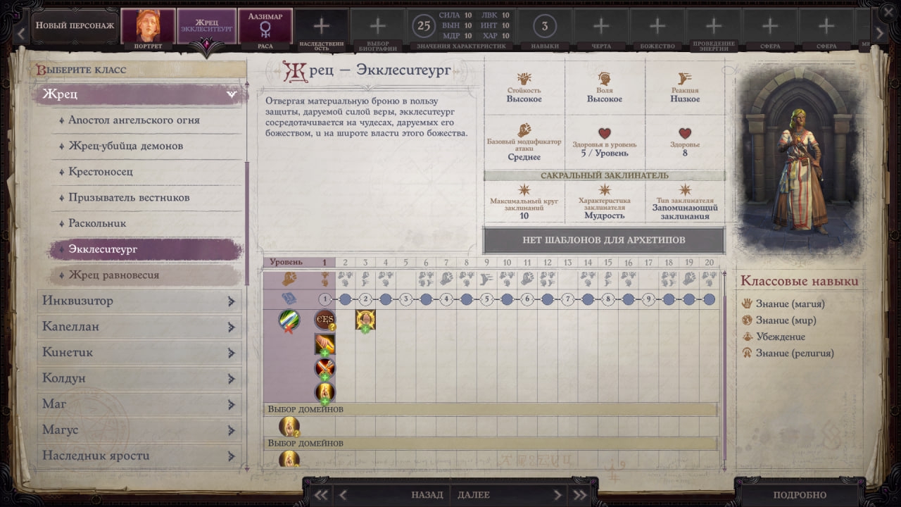 Или какой-нибудь оракул попроще жреца будет? Смущает только, будто бы в обоих этих классах, кроме экклеситеурга, подразумевается средняя броня+щит, или легкая броня, если для призывателя... А по-моему девочка должна ходить в тряпичном платье...