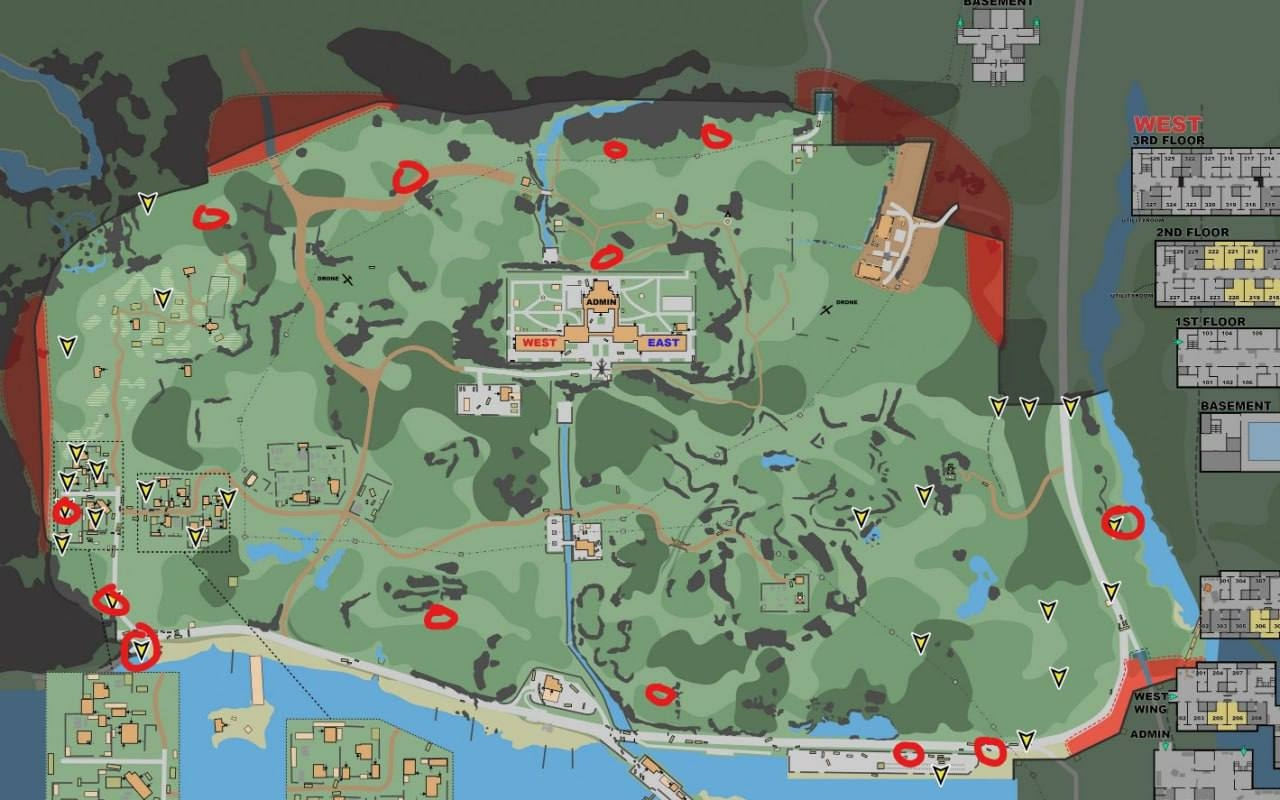 На берегу новые спавны, нагуглил такой скрин. Красные - актуальные респы. Сам не тестил, но основываясь на скрине: Вернули старый спавн, где сейчас выход с запиской, раньше этот респ был имба. Но сейчас средний. Наконец-то удалили 50 респов в деревне и сделали один. И удалили 3 уебанских респа, в болоте и с двух сторон от перехода на маяк, оставив только 1 респ в той зоне. В целом, хоть и разнообразие, но до сих пор респы на берегу гиганесбалансированный кал, тип чел может буквально у админки заспавниться, а другой на тоннеле/стройке/деревне.