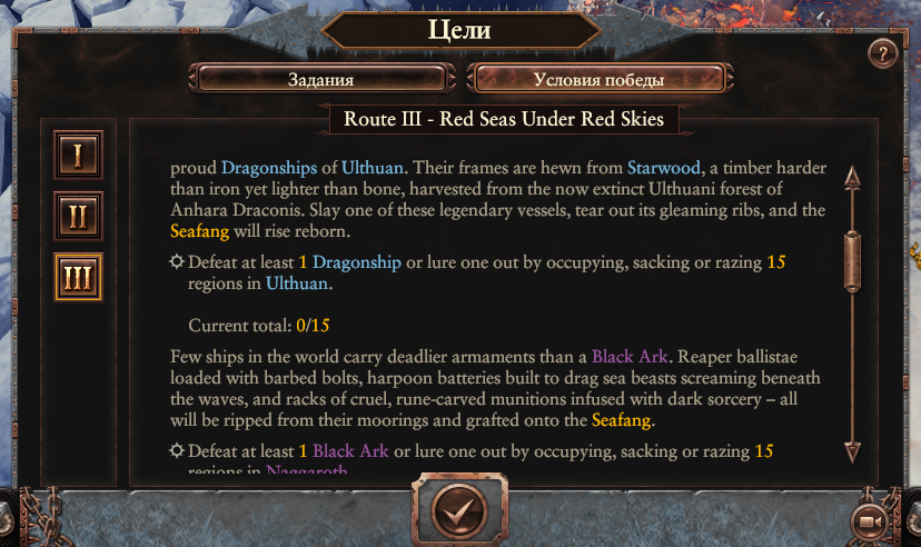 АНОНСИРОВАН Total War: Warhammer 40К! Узнать больше там: https://www.totalwar.com/news/total-war-warhammer-40000 Даты релиза пока нет. Warhammer 3 1) Анонсировано новое длс Lords of the End Times с НАГАШЕМ!: https://www.youtube.com/watch?v=jPIpN9OKKR4 Обещают летом 2026 года. 2) Вышло ДЛС со Слаанешем Tides or Torments. Лорды: Дечала Отвегнутая (Слаанеш), Сейл Вероломный (Норска) и Айслинн (высшие эльфы). Бесплатный лорд для всех - Маска (Слаанеш). 3) Для тех, кто вкатывается после долгого перерыва в игру - патч 6.2 был ОГРОМНЫМ по размерам (аж 55 гигов) и перелопатил все файлы игры, так что придётся потерпеть долгую закачку и установку. Зато после него размер игры снизился примерно на четверть и загрузки в самой игре станут побыстрее. 4) Патч 7.03 с фиксом Кайроса и прочих багов релизнулся из беты.