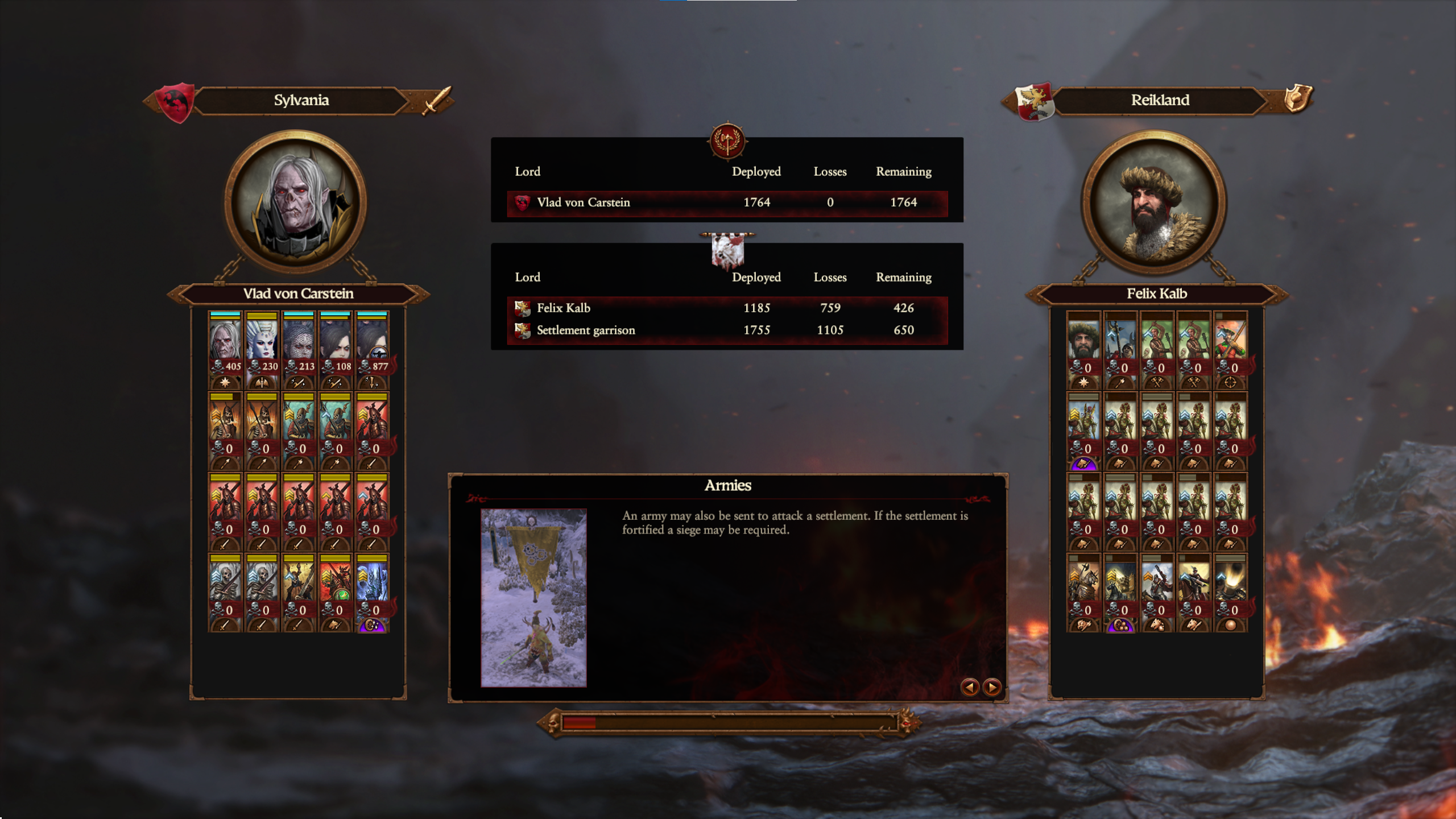 >>50691695 Одна из самых первых (еще в двухе появилась) глобальных васянок с новыми фракциями, которые добавляли лорных персонажей в игру на место минорных фракций. Это не перебаланс как СФО это именно новые фракции с лордами и своими микромеханиками (типа в Талабекланде есть культ Таала, а в Остермарке можно огров нанимать через лэндмарку). Типа добавляют именных лордов на фракции курфюрстов Империи и Бретонии и еще паре рас https://steamcommunity.com/workshop/filedetails/discussion/2802810577/3317484899042968859/