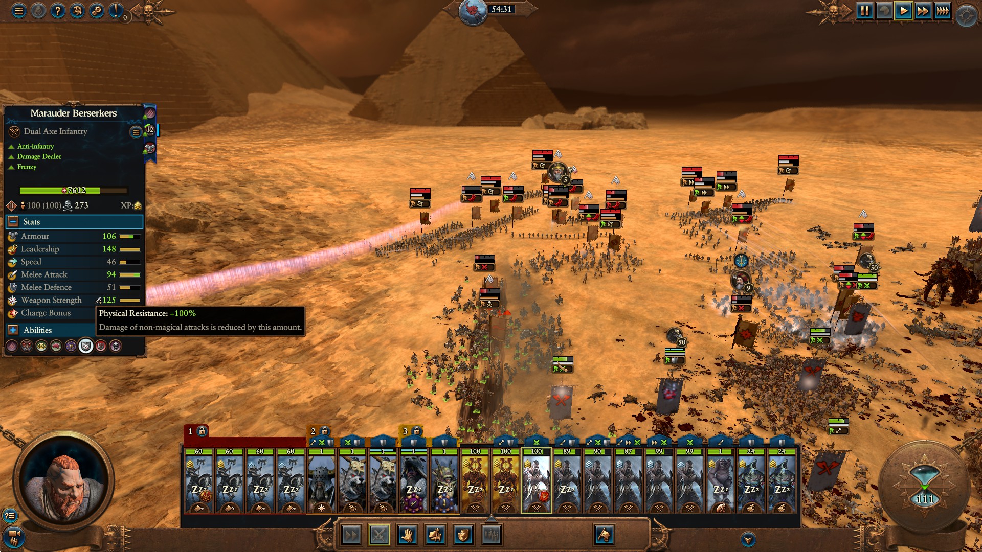 Из топовых думстаков ещё бармазмеи\горгоны, потому что у них есть реген (у первых через боевые испытания, у вторых по дефолту в мили). Ну и по классике думстак из героев роковых быков всё ебёт, не такой дпсный, как обычные минотавры, зато герои гораздо крепче. А сейчас герои ещё сильнее стали, после баффа дженерик трейтов лордов и героев и баффов дженерик шмота. Моргур так вообще бармазмеев в небеса разгоняет своей уник веткой. А так попробуй всех юнитов, бистменам с выходом разных длс насыпали кучку разных монстров и отрядов от всех богов хаоса.