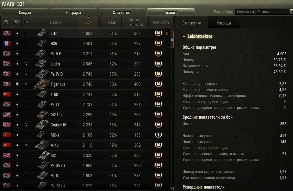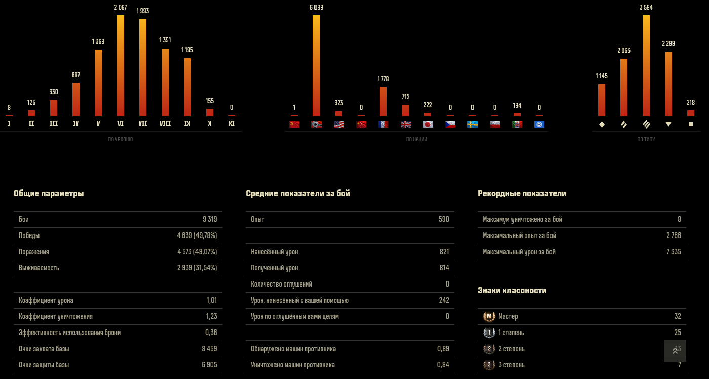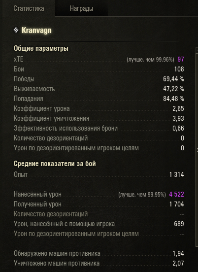 На тему процента побед к урону. Вот челик старается, но делает вот такой урон на танках. Старается, не бот, но винку сами видите. Ньюфаг прошлого года.