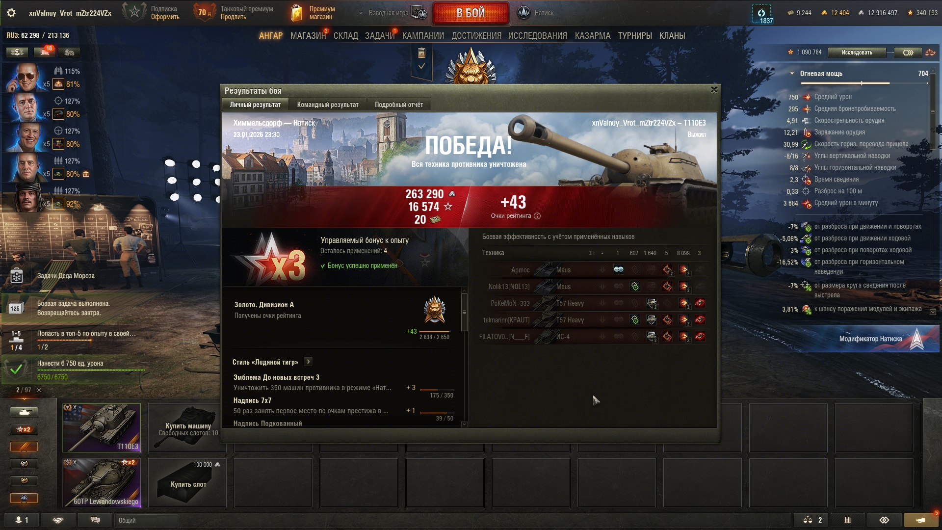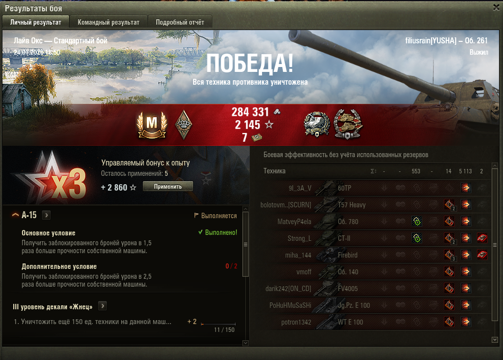 Вот это, думаю, мой максимум в текущем сезоне. Какой-то нереальный винстрик в последние два дня вышел, но навряд ли так дальше будет Эх, доделаю два последних квеста в натиске, и нахуй танки до нового сезона!