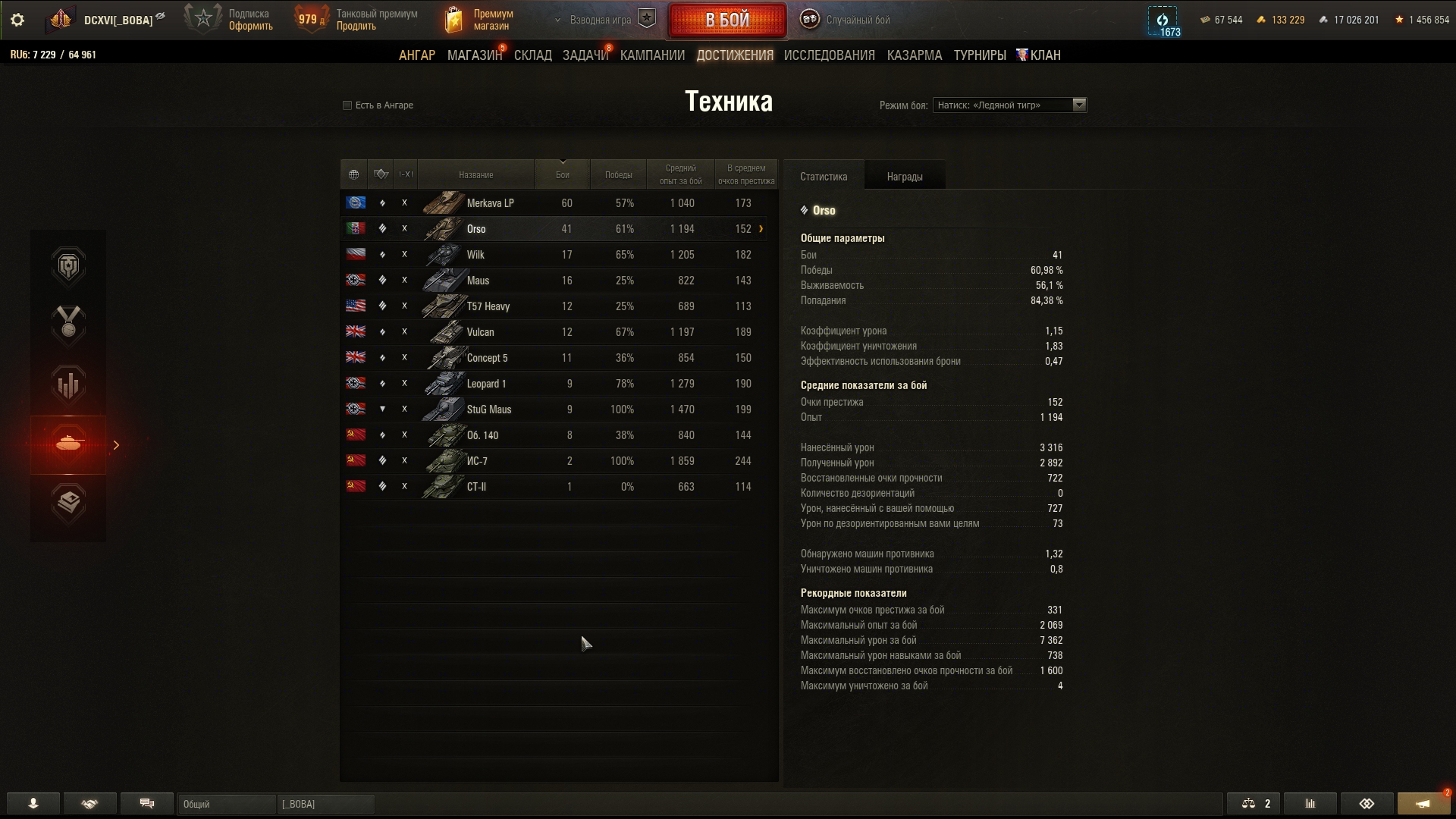 А вот в ангар себе мауса тоже качать наверное не буду. Выкачал сотку, но не покупал. Хочу тапкаVII вкачать. Валяется еще яга100, но играть она желания не вызывает - продам, наверное.