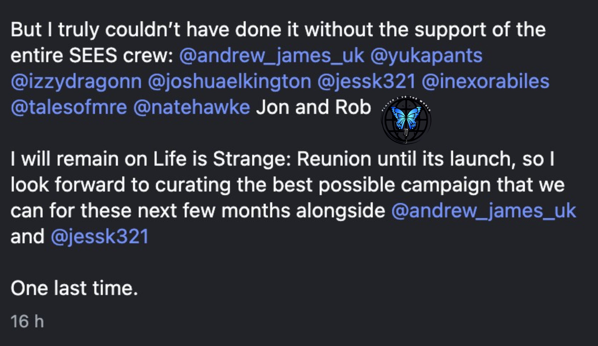 В этом месяце он покинул свой пост после девяти лет работы в компании, разрабатывающей игры Life Is Strange: Reunion и True Colors.