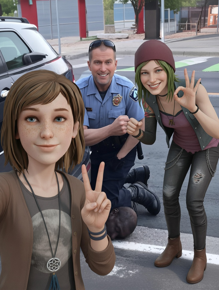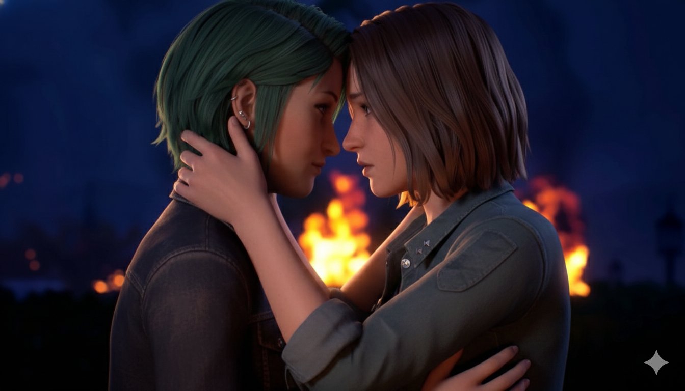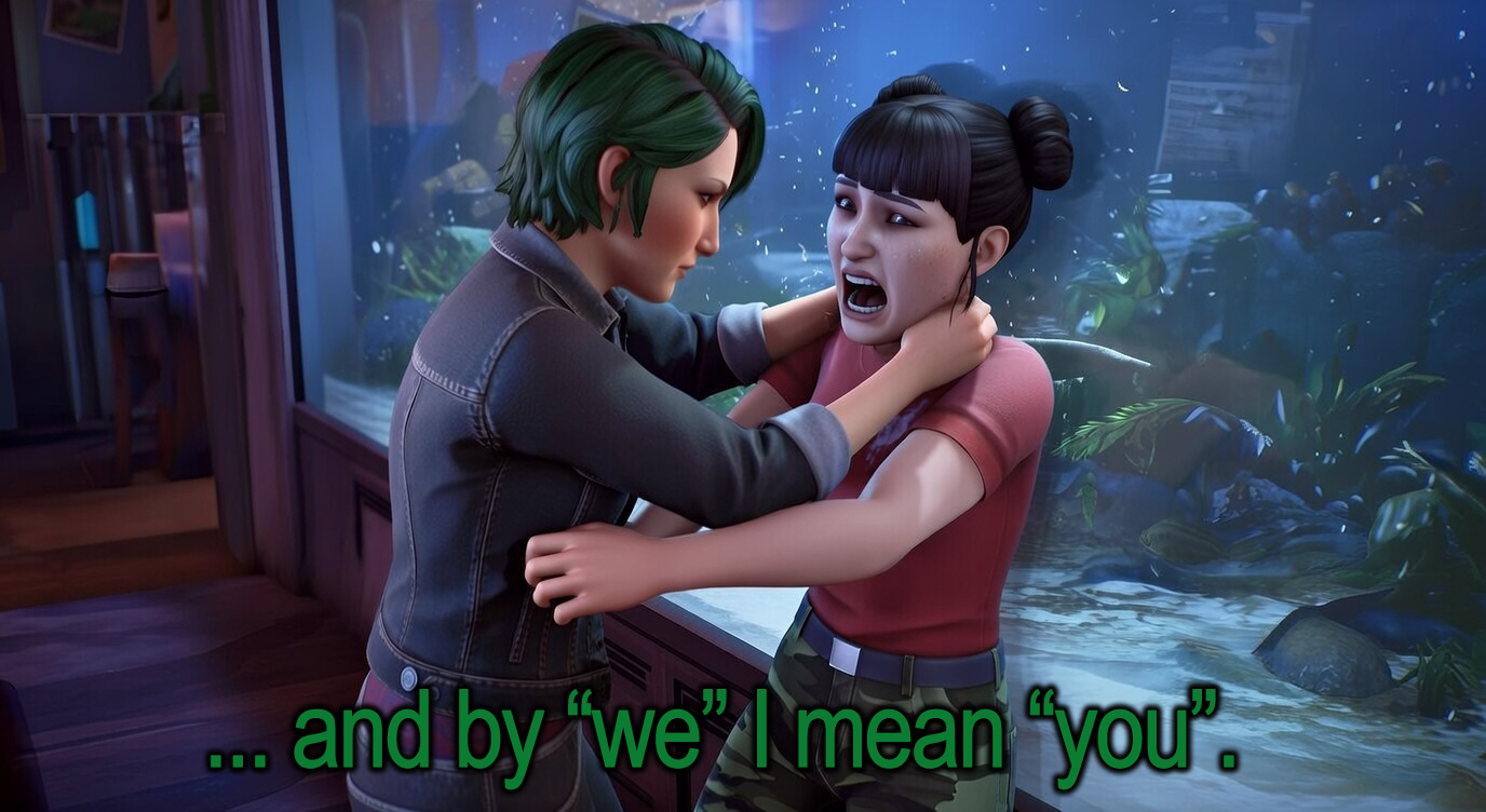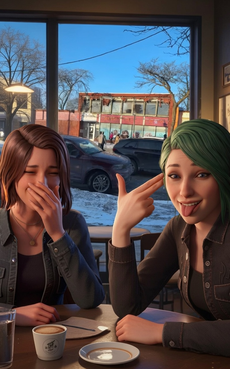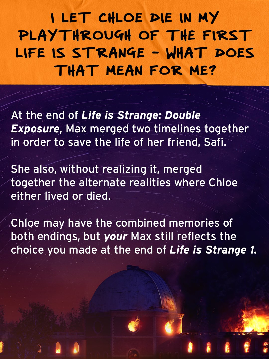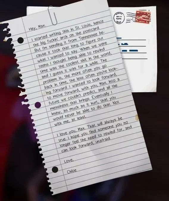 В сюжете эти фотки на протяжении всей игры служат напоминанием для Макс что необязательно выбирать между одним хреновым будущим и другим хреновым будущим, между двумя таймлайнами, что может быть есть третий вариант, где всё хорошо. Дабл Экспоужар буквально реконструрирует выбор из первой части, и как бы говорит что его бинарность - это неправильно, не обязательно выбирать смерть хорошего друга или смерть сотен невинных людей. И это буквально так, первая игра загоняет тебя в рамки этого выбора ради драмы, но это не единственный выбор пер се. И вот в концовке Дабл Экспоужара, Макс отказывается снова делать этот выбор, и выбирает спасти всех, и людей в Каледоне, и Сафи, и у неё это получается.