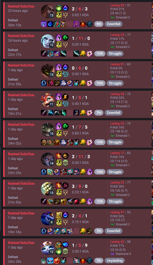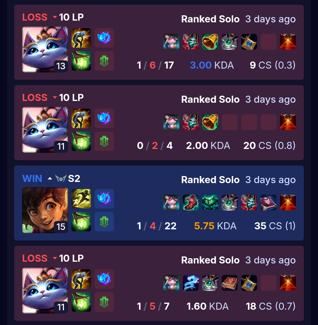 Поддерживаю, уходи из ранкедов нахер, играй норму или аркейны с рандомами - там хотя бы монетка не такая жесткая. Экосистема хуевая, но пока риот жиреет на твоих бустах, ничего не изменится. Выживай в нормалках, а ранкед оставь им.