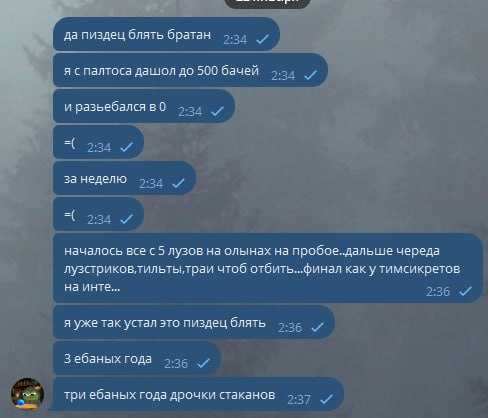 сынуль у меня нет необходимости даже просто сидеть в этой помойке но делать нехуй пока волосатая команда ивент не выкатит чтобы я мог посвятить время своему хобби