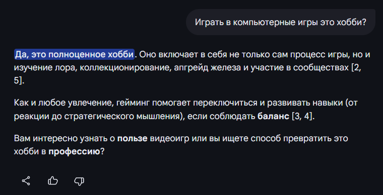 >спросил что-то у нейросеточки без контекста которая пиздить мнения написанные кем-то в интернете и компилирует в дуобный формат чтения ну ну это разъеб антиигрохобби дебилы