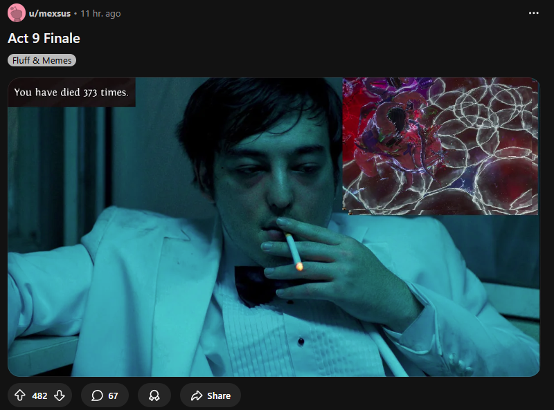 та не БС это на деле игра со сложным сжетом где в основе мироздания стоят творения лавкрафта там типо всякие шубнигурабы космические сущности ползущие древние боги там все дико сложно а от солсов там пару отсылок
