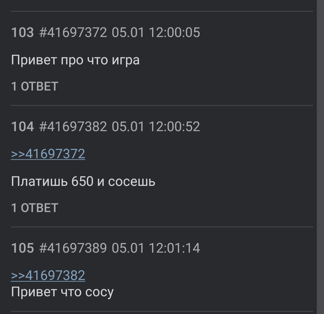 Ебанашка, ты хотя бы паузу делай между постами, я понимаю тебя разъебали по фактам, но тут не долбоебы сидят, а двачеры, умнейшие люди, которые раскусили тебя как дешевку с подсасыванием самому себе.