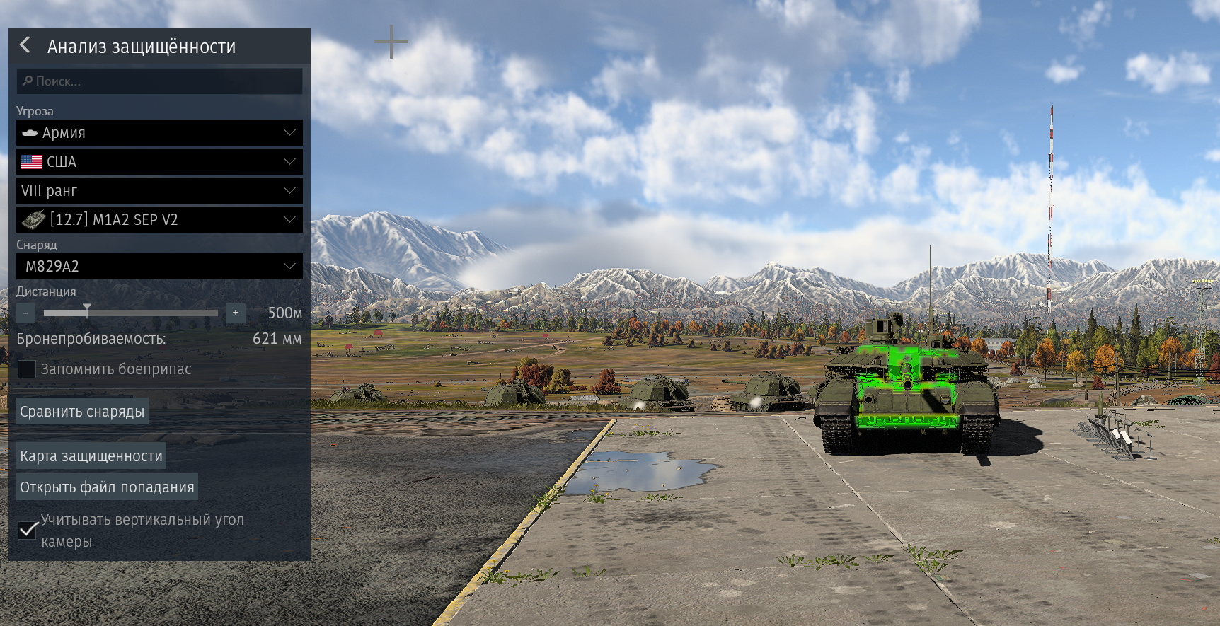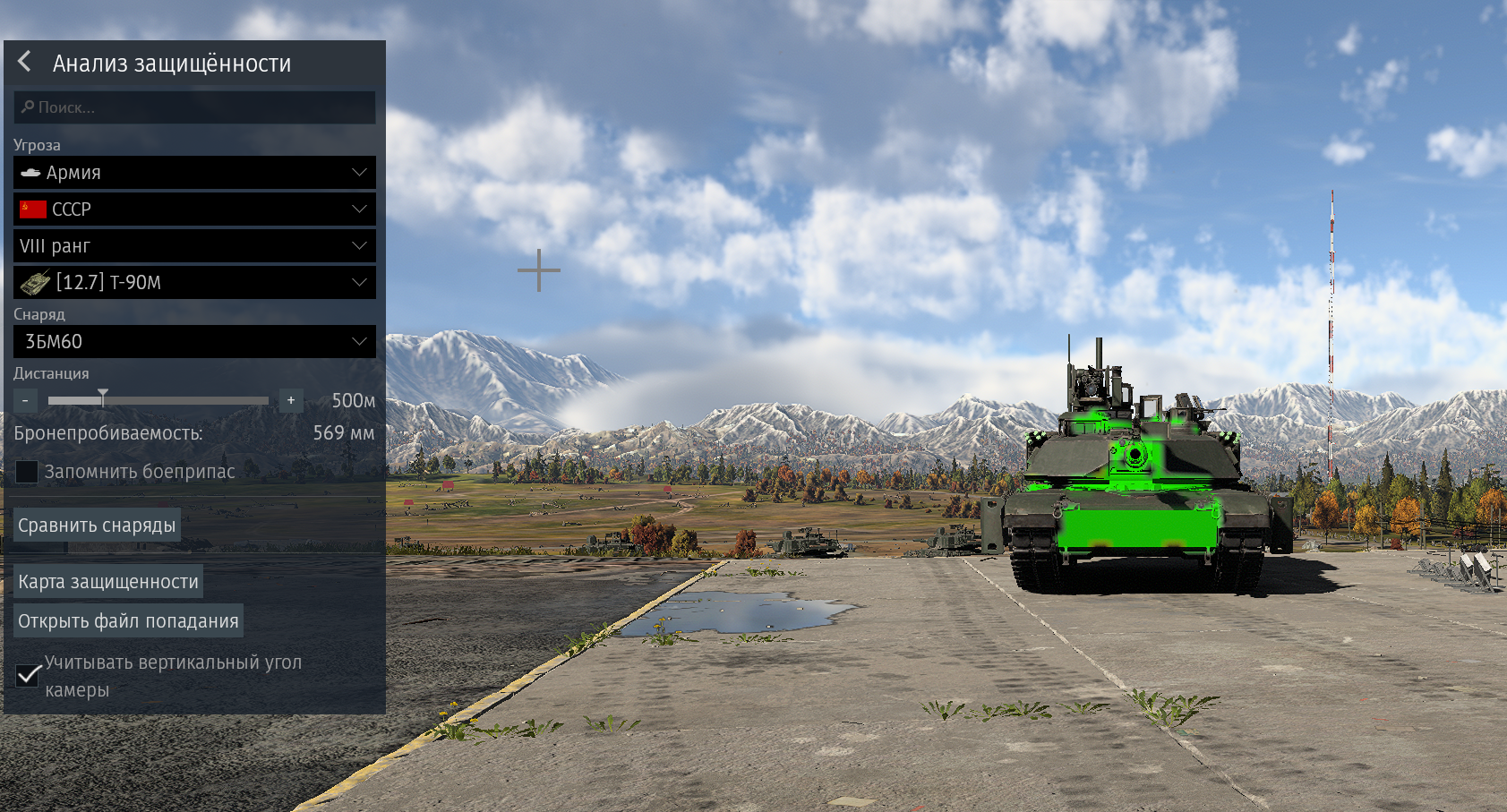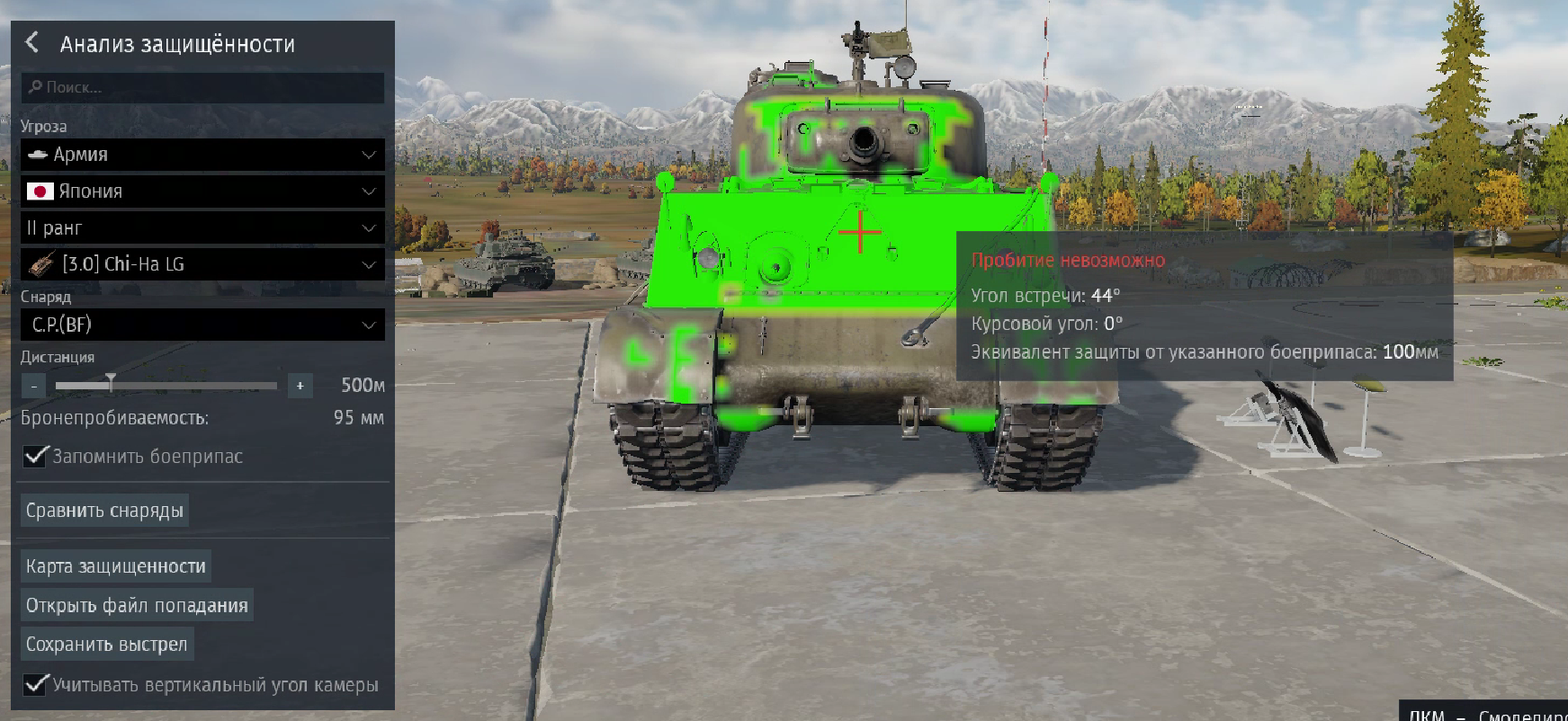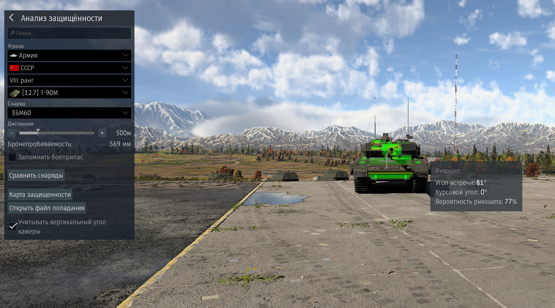 На 2а7 том же самом карта пиздит, половина зеленой зоны влд - рикошет, почти все что сверху слева на башне - непробитие. Другие не проверял, похуй.